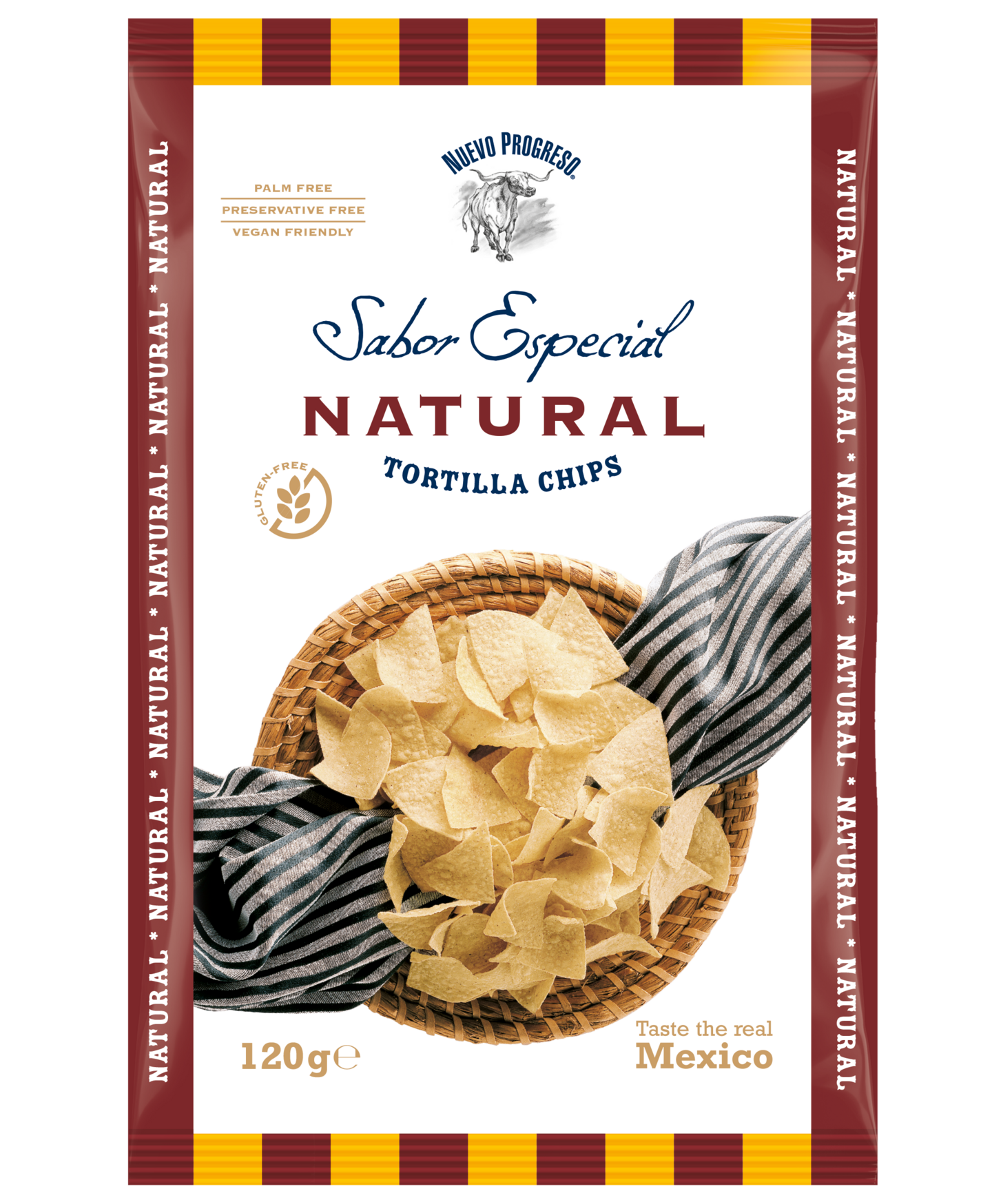 VegaaninenTaste the real Mexico! Tuulahdus autenttista meksikolaista makumaailmaa. Nuevo Progreso maissilastut on valmistettu meksikolaisesta maissijauhosta (Masa Harina). Suolatut maissilastut ovat meksikolaisen keittiön kulmakiviä. Nauti sellaisenaan, dippaa tai valmista herkullisia tortilla-annoksia. Pakkauksen takaa löydät herkullisen Nachos Con Pollo -ohjeen. Nuevo Progreso tuotesarja tarjoaa raaka-aineet aitoon meksikolaiseen ruoanlaittoon.