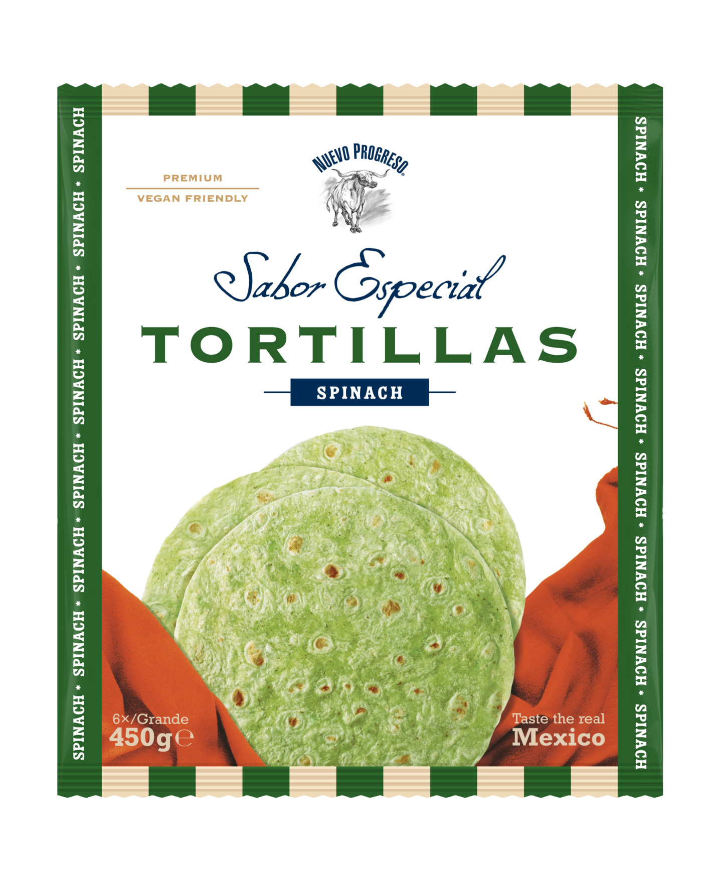 Nuevo Progreso Sabor Especial Tortillas Spinach isot pinaattitortillat 6 kpl 450g