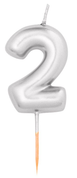 Numerokynttilä 2 hopeanvärinen 4,5cm/8cm