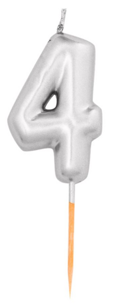 Numerokynttilä 4 hopeanvärinen 4,5cm/8cm