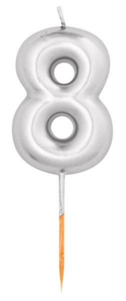 Numerokynttilä 8 hopeanvärinen 4,5cm/8cm