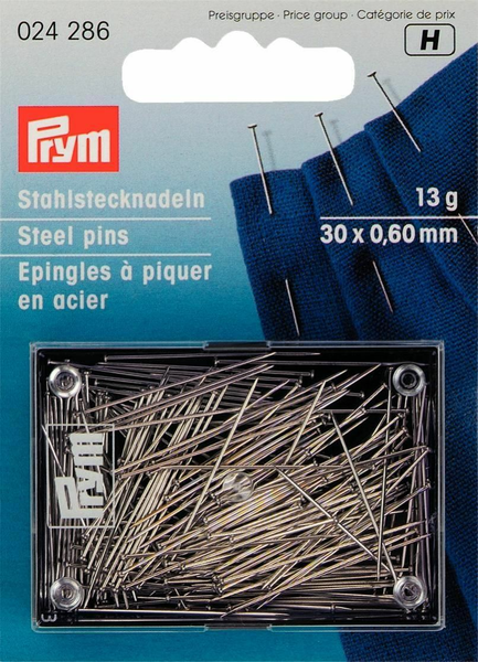 Monikäyttöinen nuppineula, 0.60 x 30 mm, 13 g, karkaistua terästä. Säilytysrasia.