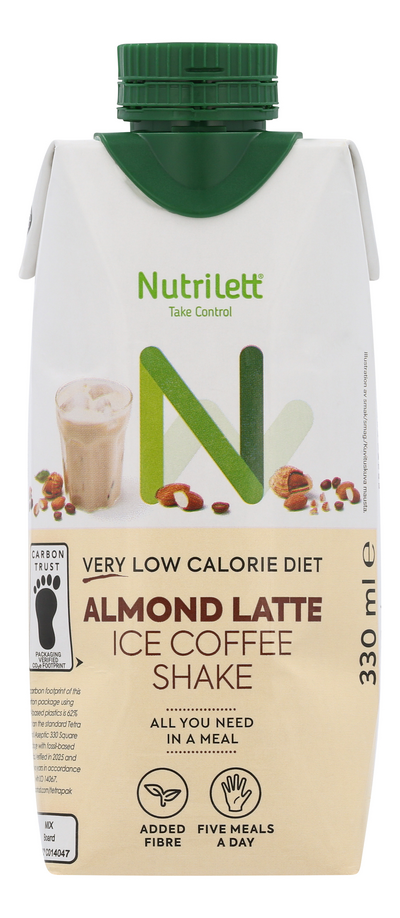 Nutrilett Almond latte Ice coffee -ruokavalionkorvikejuoma on täyteläinen ja herkullinen, mantelimaitopohjanen valmisjääkahvi. Yhdessä juomassa on 3g lisättyä kuitua. Tuotteen tetrapakkaus on valmistettu 72 % kasviperäisestä materiaalista ja korkki on sokeriruokoa. Nutrilett -painonhallintaan tarkoitetut erittäin niukkaenergiaiset ruokavalionkorvikkeet tarjoavat nopean ja tehokkaan tavan pudottaa painoa. Tuotteet sisältävät kaikki elimistön tarvitsemat ravintoaineet, kuten vitamiinit, kivennäisaineet, proteiinin ja välttämättömät rasvahapot. Very Low Calorie Diet (VLCD) perustuu erittäin niukkaenergiaiseen ruokavalioon, jossa päivän kaikki ateriat korvataan VLCD-tuotteilla. Tällöin päivittäinen energiansaanti jää alle 800 kcal:n.