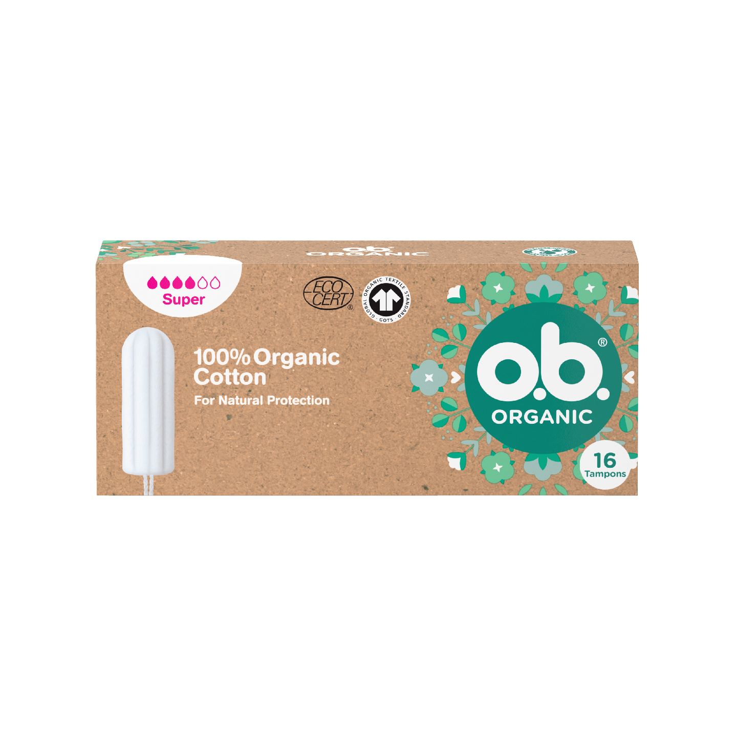 o.b.® Organic -luomutamponi ei sisällä muovia. Tehty 100% luomupuuvillasta. Ainutlaatuiset kaartuvat urat antavat luotettavaa suojaa. Hypoallergeeninen – kehitetty minimoimaan allergiariski. *Testattu ja hyväksytty OEKO-TEX® STANDARD 100 kriteerien mukaisesti.