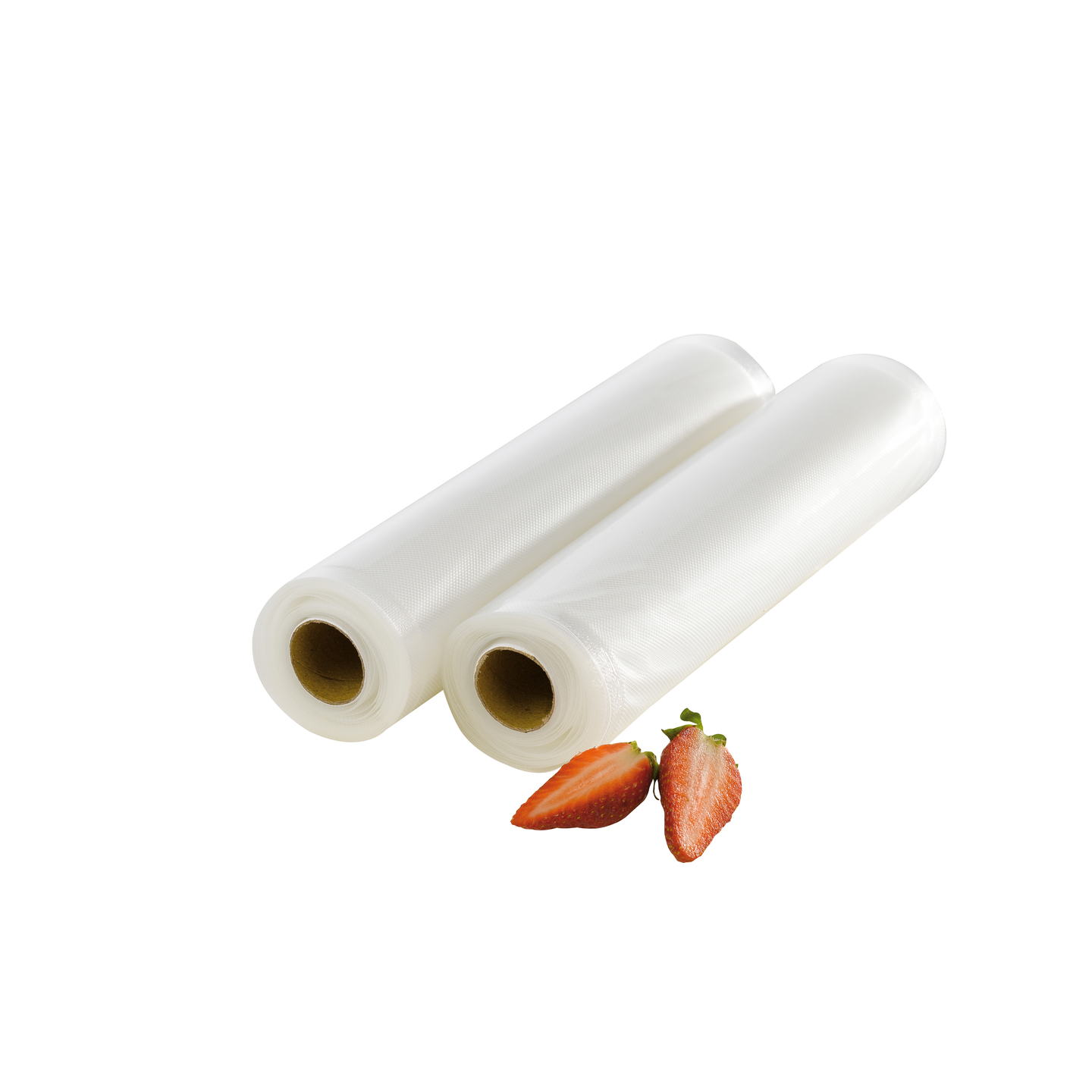 Pussirullat OBH Nordica Food Sealer -tyhjiöpakkauslaitteisiin – voit itse valita pussin koon. Soveltuu elintarvikkeiden lämmittämiseen mikroaaltouunissa sekä poreilevassa vedessä, jonka lämpötila on hieman kiehumispisteen alapuolella.