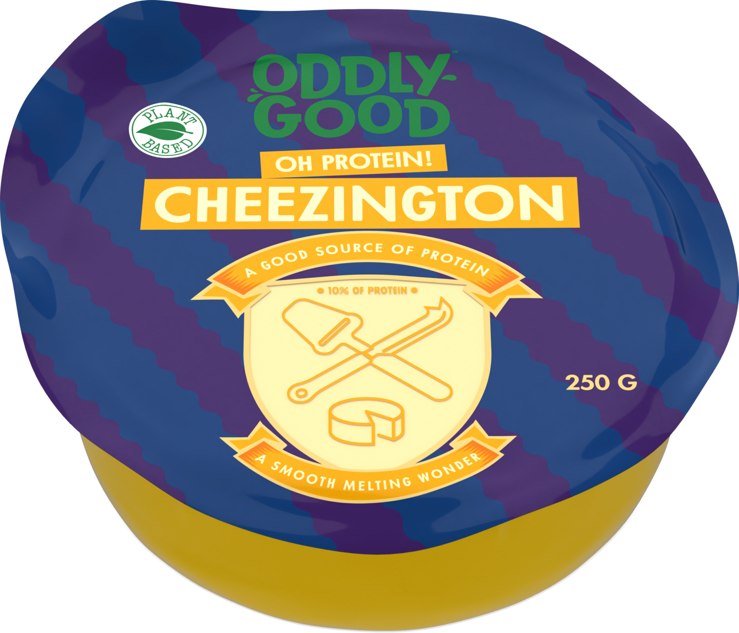 VegaaninenMikä on pehmeää ja herkullista, vastustamatonta viipaloitavaa, samettisen sulavaa, kaiken lisäksi kasvipohjaista ja proteiinin lähde? No sehän on tietenkin Oddygood® Cheezington Oh protein -pala! Viipaloi leivän päälle, kokeile kuutioituna salaatteihin ja rohkaistu raastamaan ruokiin. Cheezington-pala taipuu moneen!