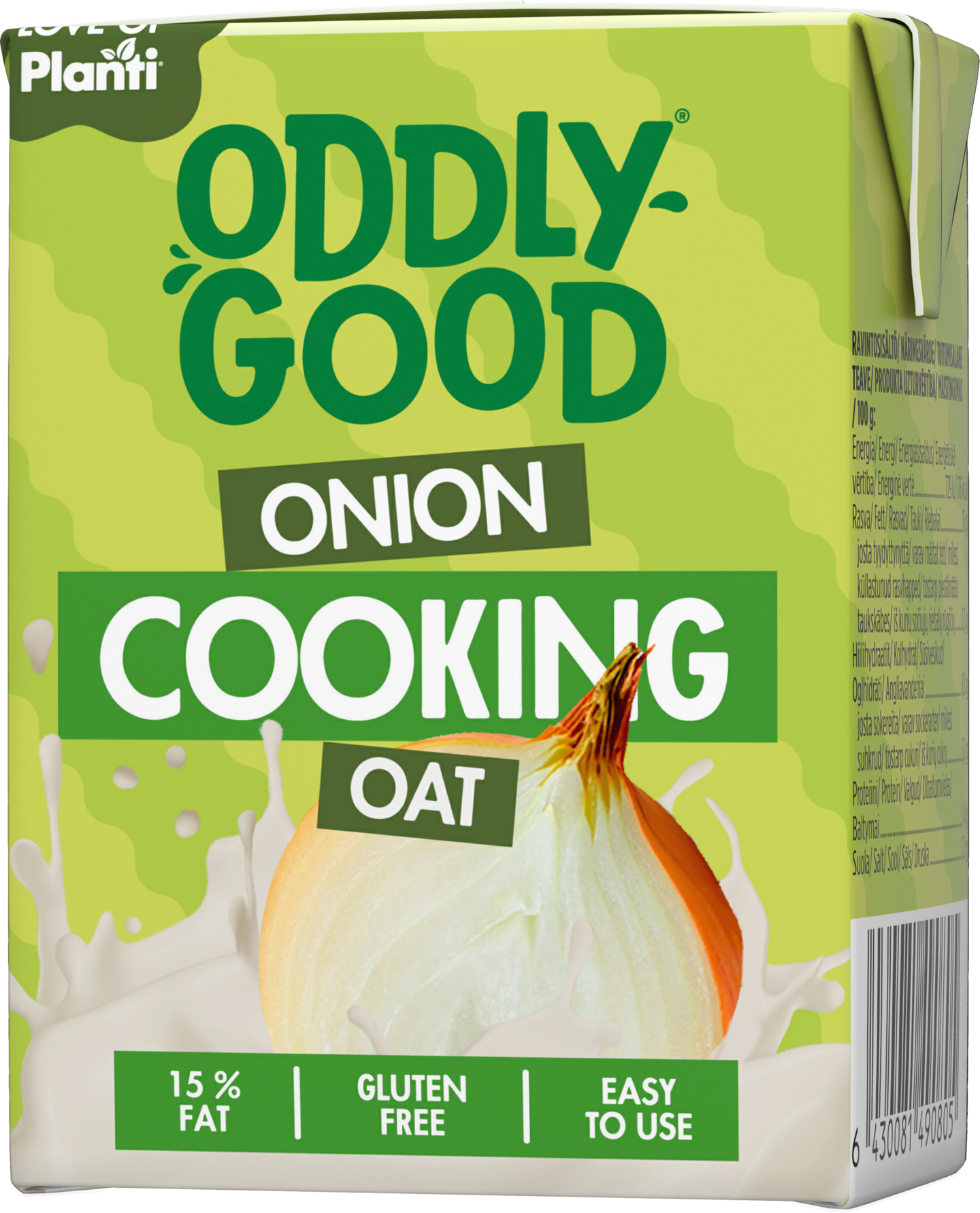 VegaaninenOddlygood® Cooking Oat sipuli tuo kauran pehmeyttä kokkailuun - nyt gluteenittomana! Tämä monen kokkaajan luottotuote on ollut aiemmin saatavilla nimellä Oddlygood® Planti Cooking Oat sipuli. Nyt tuote on siirtynyt Oddlygoodin alle - ja on samalla muuttunut gluteenittomaksi. Käytä kuin maustettua ruokakermaa, kun haluat saada sipulin aromikkuutta ruokaan. Cooking Oat tuo täyteläistä makua keittoihin ja pastakastikkeisiin ja kestää hyvin myös hauduttamista. Sillä teet myös mehevät piirakat. Kokkailemisiin!