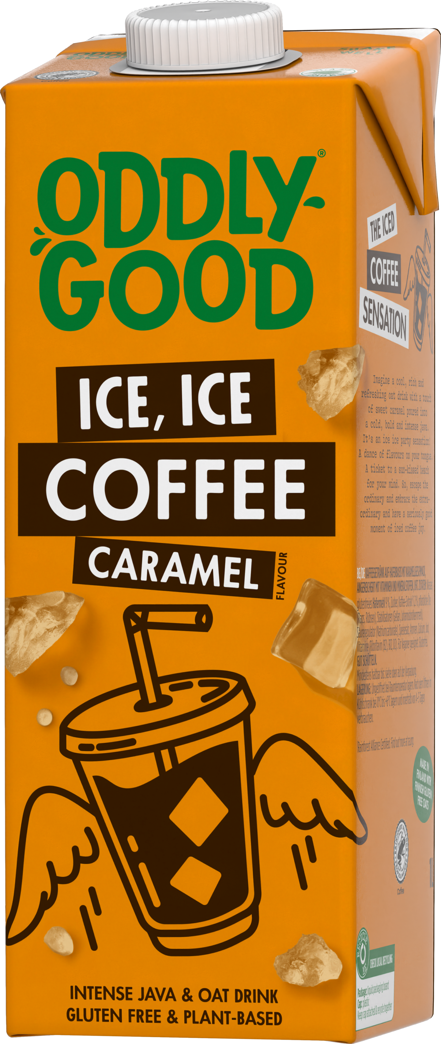 VegaaninenGluteeniton ja vegaaninen Oddlygood® jääkahvi caramel on viileä uutuus kahvinystäville! Herkullinen yhdistelmä kahvia ja kinuskikaramellin makuista Oddlygood® kaurajuomaa. Nauti kylmänä. Litran pakkauksesta riittää useampaankin lasilliseen, joko itselle tai kavereille. Kaada lasiin ja lisää halutessasi jäitä. Muutapa et sitten herkkukahvihetkeesi tarvitsekaan!