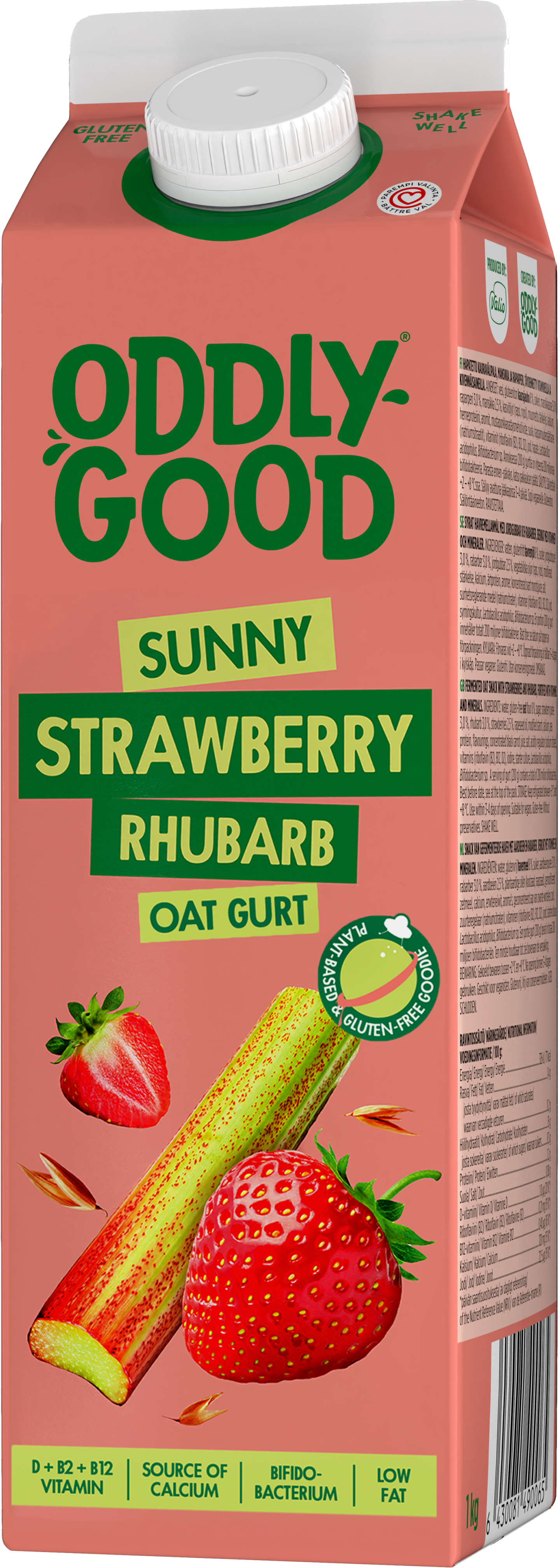 VegaaninenOddlygood® kauragurtti mansikka-raparperi maistuu kesältä! Makoisa yhdistelmä mansikkaa ja kirpakkaa raparperia. Tämä herkullisen hedelmäinen ja silkkisen pehmeä kauragurtti sattaa olla uusi suosikkivälipalasi. Lusikoi sellaisenaan, tuunaa lempilisukkeillasi tai surauta smoothien joukkoon. Oddlygood® gurtit ovat hillittömän hyviä, ja Sydänmerkkikin löytyy. Ne valmistetaan Suomessa gluteenittomasta kaurasta ja sopivat vegaaniseen ja gluteenittomaan ruokavalioon. Maista ja ihastu!