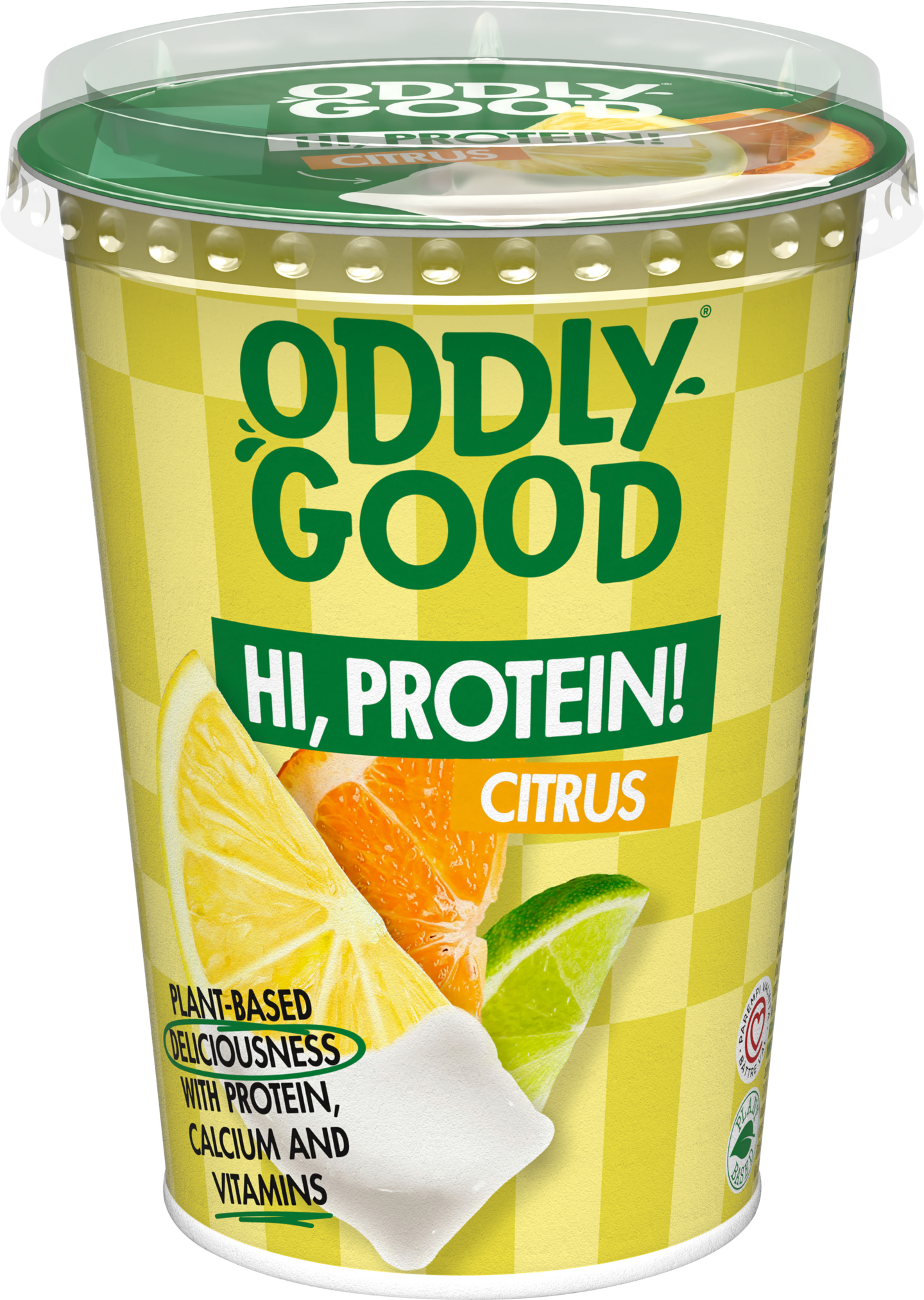 vesi, sokeri, SOIJAPROTEIINI 5 %, appelsiinihedelmäliha 3,0 %, muunnettu tärkkelys, gluteeniton KAURAJAUHO, kookosmaitojauhe, limetäysmehu 1,0 % (tiivisteestä), sitruunatäysmehu 1,0 % (tiivisteestä), appelsiinitäysmehu 1,0 % (tiivisteestä), kasviöljyt (rapsi, rypsi), tärkkelys, kalsium, aromit, happamuudensäätöaine (natriumsitraatit), suola, väri (karotenoidit), vitamiinit (riboflaviini (B2), B12, D2), jodi, hapate, Lactobacillus acidophilus, Bifidobacterium sp.