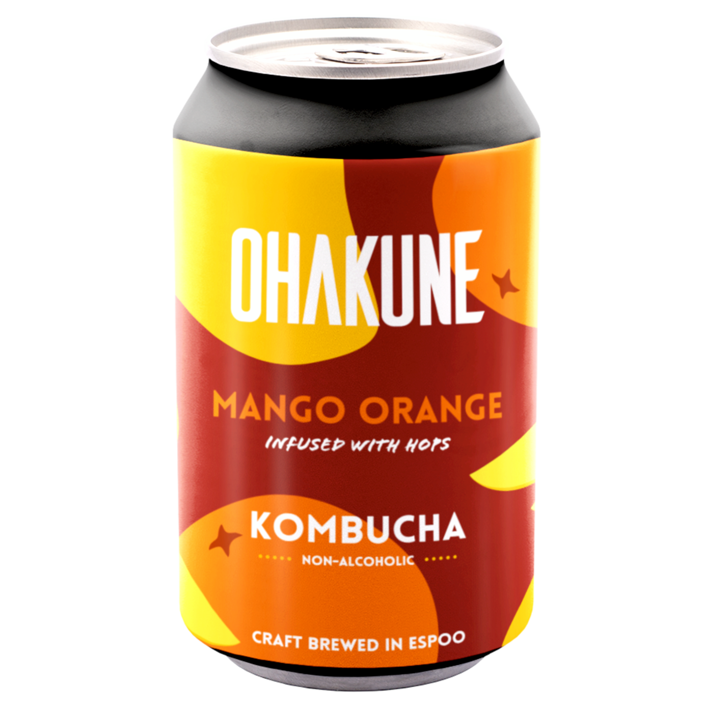 Ainesosat: Kombucha (vesi, sokeri, musta tee, vihreä tee, kombucha-kasvusto), mango, appelsiinimehutiiviste, humala, hiilidioksidi.