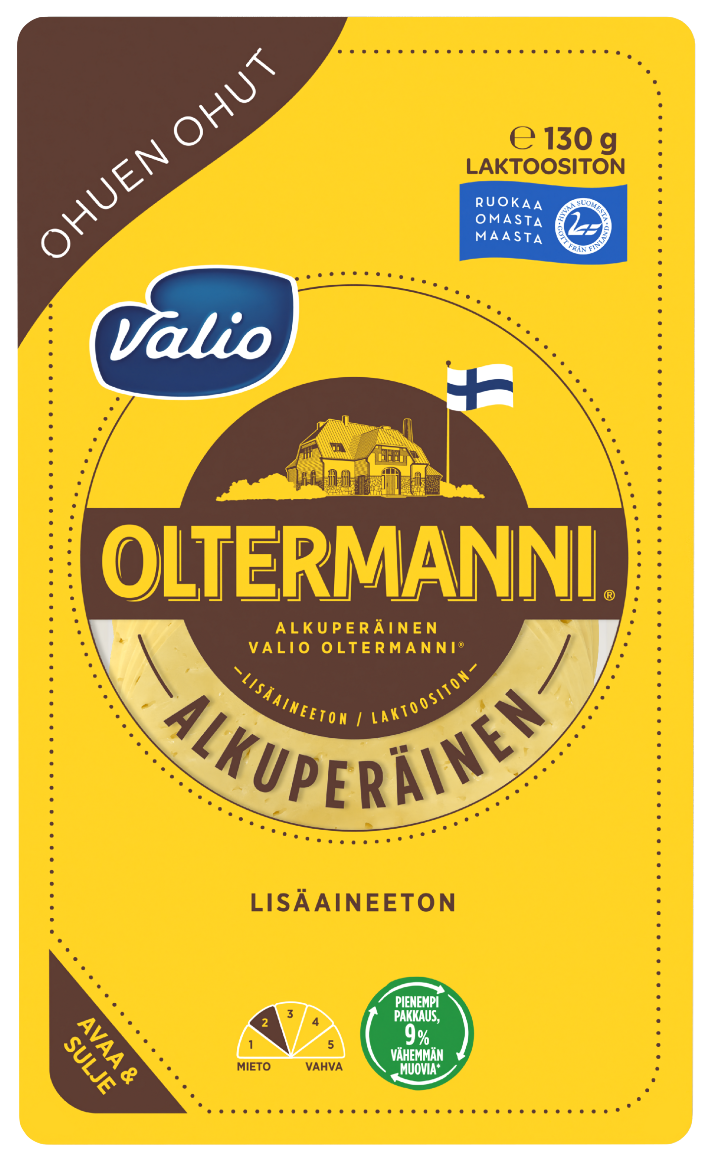 Valio Oltermanni® on Suomen suosituin kermajuusto, joka on etenkin lapsiperheiden mieleen. Se on murukoloinen juusto, joka on maultaan mieto, aavistuksen verran hapan, kermainen ja miellyttävän raikas. Valmiiksi viipaloitu juusto on kätevä käyttää ja sopii esimerkiksi voileiville, lämpimiin leipiin, kuorruttamiseen tai sellaisenaankin syötäväksi. Kaikki Valio Oltermanni® juustot valmistetaan suomalaisesta maidosta eivätkä ne sisällä lisäaineita. Saatavilla palana ja viipaleina – tavallisina ja ohuen ohuina.