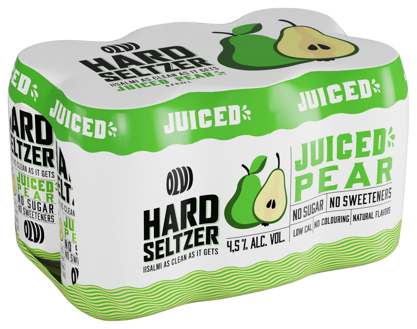 OLVI Hard Seltzer Juiced Pear on raikas terästetty ja hiilihapotettu vesi, jossa maistuu mehukas päärynä. Tuote on alkoholipitoisuudeltaan 4,5 % ja kaloripitoisuus on muihin juomasekoituksiin verrattuna pieni vain 26 kcal per 100 ml. Tuotteessa on 0 g sokeria, ei keinotekoisia makeuttajia eikä väriaineita ja sen valmistuksessa on käytetty ainoastaan luontaisia aromeja. OLVI Hard Seltzer Juiced Pear sopii nautittavaksi kylmänä sellaisenaan tai jäiden ja hedelmien kanssa.