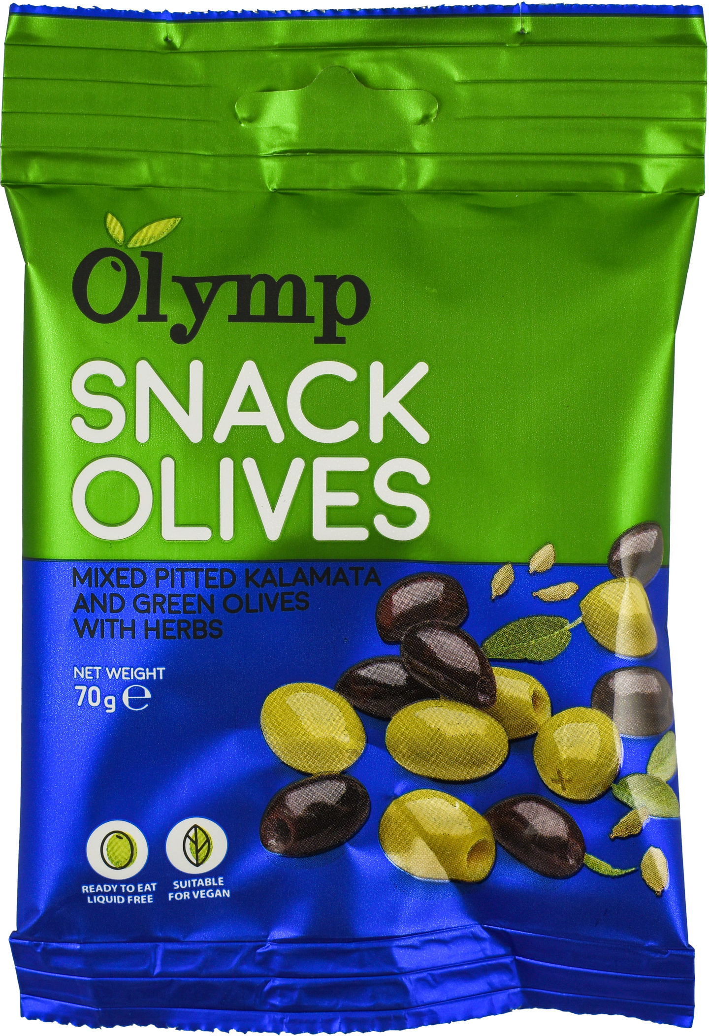 VegaaninenKivettömiä, krekkalaisia, yrttimarinoituja kalamata ja vihreitä oliiveja kätevässä 70 g pussukassa. Olymp oliivi-snack sopii mainiosti välipalaksi, meze-pöytään tai salaattiannoksiin. Olymp oliivit poimitaan käsin ja valmistetaan korkeita laatustandardeja noudattaen.