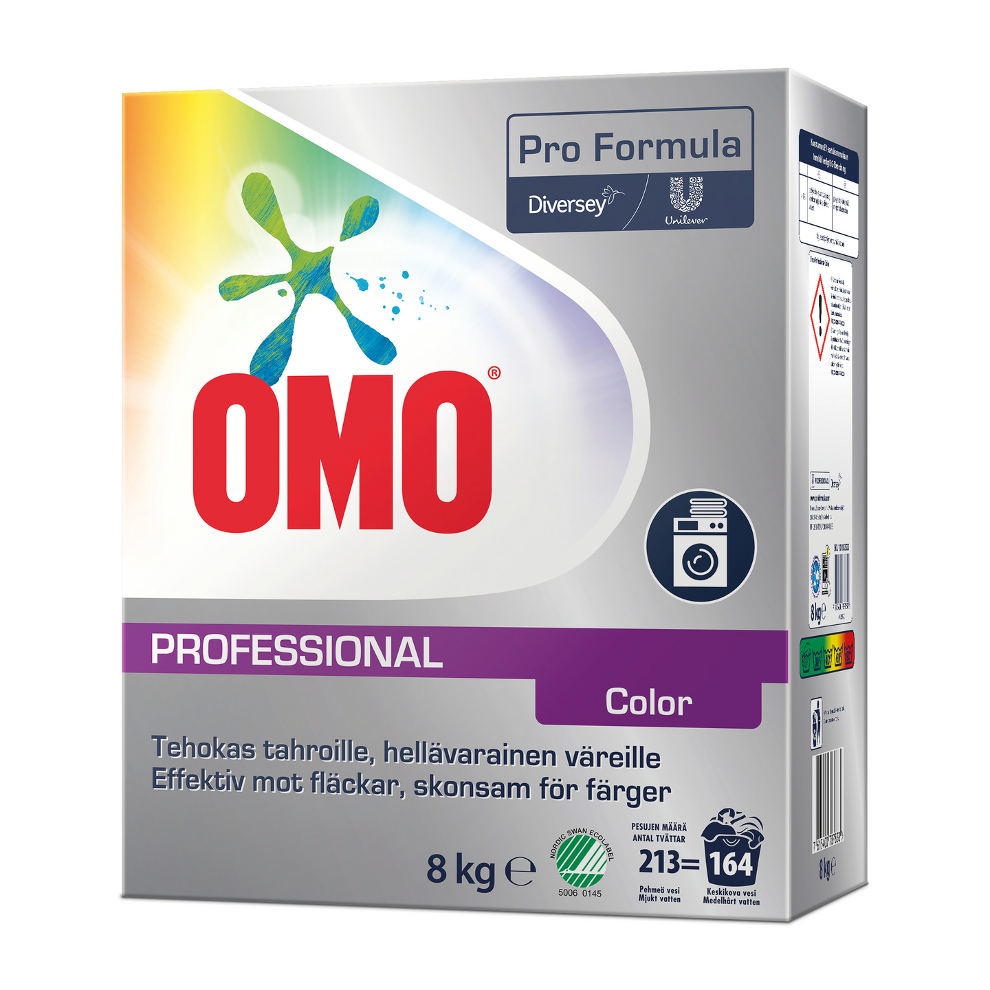 Omo Professional Color pyykinpesujauhe on kehitetty kaiken väristen tekstiilien pesuun ja se soveltuu myös mikrokuituisten siivoustekstiilien pesuun.. Omo Professional Color poistaa tehokkaasti rasva- ja öljylikaa ja entsyymit pilkkovat valkuaispitoista likaa, kuten veri- ja ruokatahroja. Vettä pehmentävänä aineena on polykarboksylaatti. Jauhe on miedosti hajustettu. Ainoastaan ammattikäyttöön.
