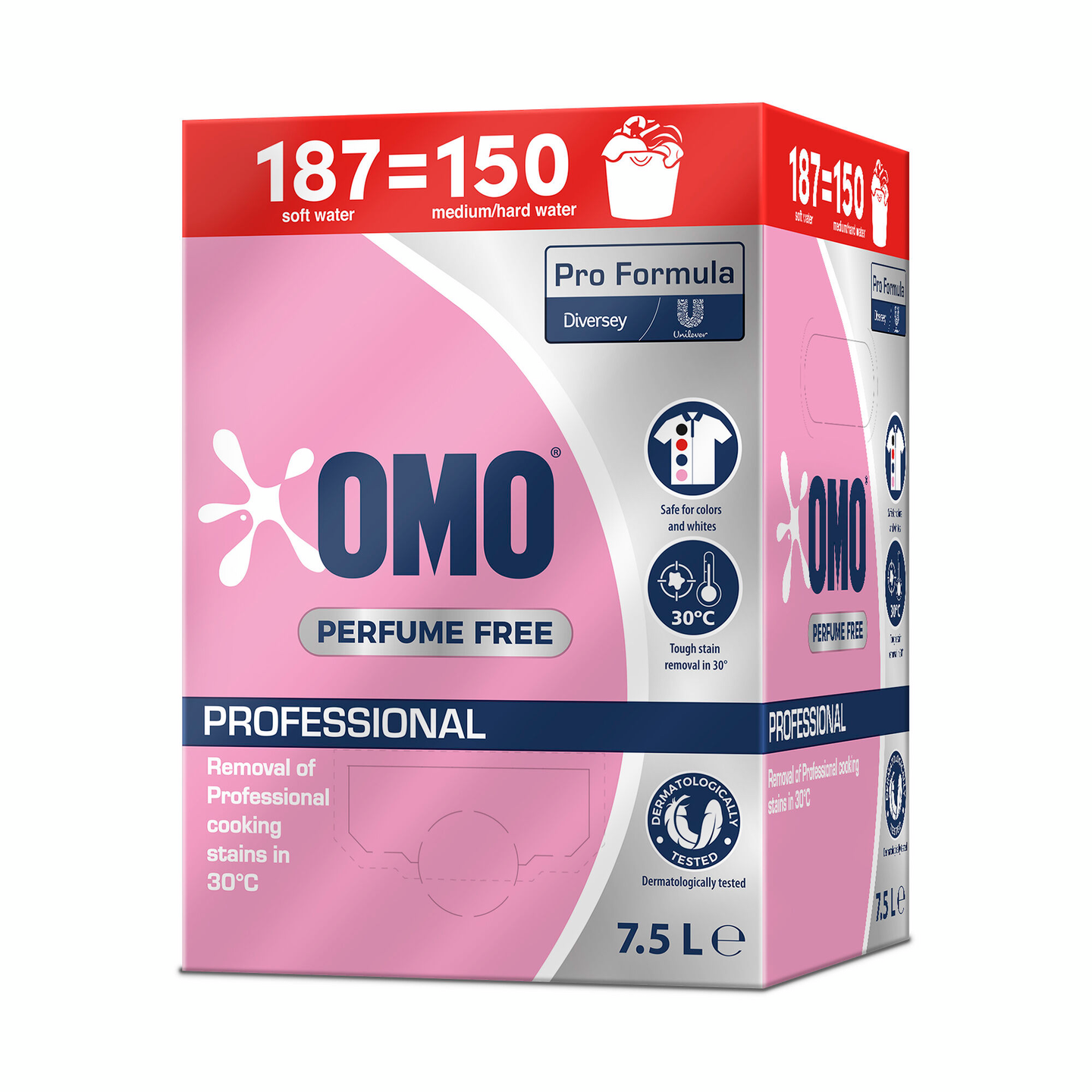 Omo Perfume Free on Pro Formula -tuotesarjan hajusteeton, nestemäinen pyykinpesuaine, joka soveltuu kaikille tekstiileille. Uusi koostumus on tehokas tahroille, mutta hellävarainen iholle. Koostumus on myös dermatologisesti testattu ja 91 % sen ainesosista on biohajoavia (pl. vesi ja epäorgaaniset suolat). Käytännöllinen 7,5 litran bag-in-box -pakkaus sopii erityisesti oman alansa ammattilaisten tarpeisiin, sillä siitä on helppo ja nopea annostella ja pakkaus on erittäin riittoisa (187 pesukertaa). Ainoastaan ammattikäyttöön.