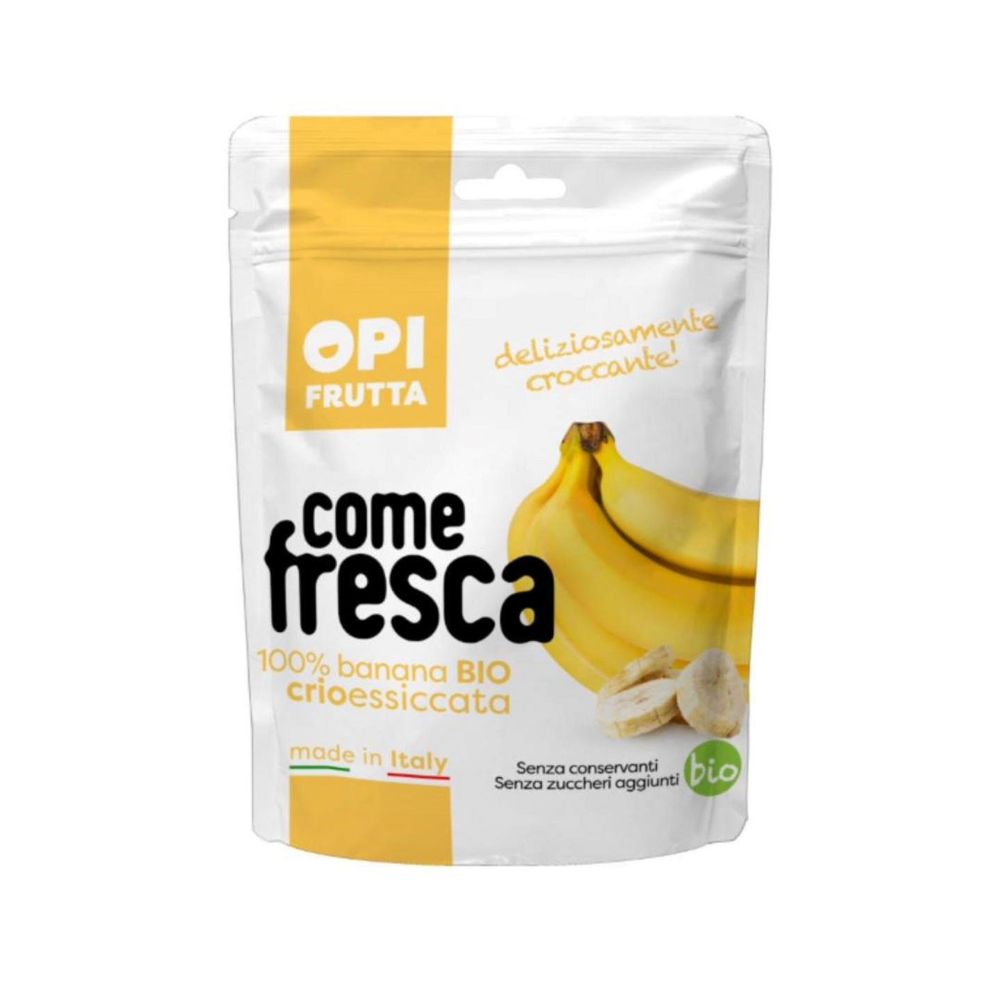 VegaaninenOPI Fruttan pakastekuivatut, vitamiinirikkaat hedelmäsnacksit ovat loistava herkku ja välipala ilman lisättyä sokeria - saatavilla viisi eri makua: persikka, banaani, ananas, mansikka ja omena.