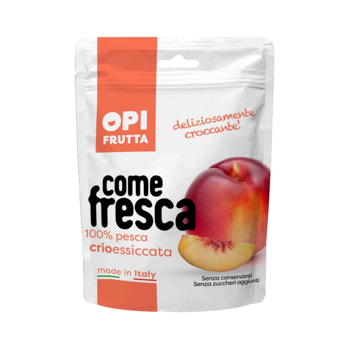 VegaaninenOPI Fruttan pakastekuivatut, vitamiinirikkaat hedelmäsnacksit ovat loistava herkku ja välipala ilman lisättyä sokeria - saatavilla viisi eri makua: persikka, banaani, ananas, mansikka ja omena.