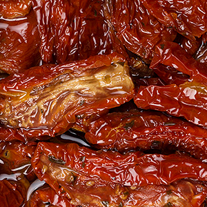 aurinkokuivattu tomaatti, auringonkukkaöljy, viinietikka (sisältää SULFIITTEJA), suola, mausteet, aromi, happamuudensäätöaine (E330), hapettumisenestoaine (E300), säilöntäaine (E200). Saattaa sisältää pieniä määriä kalaa ja selleriä.