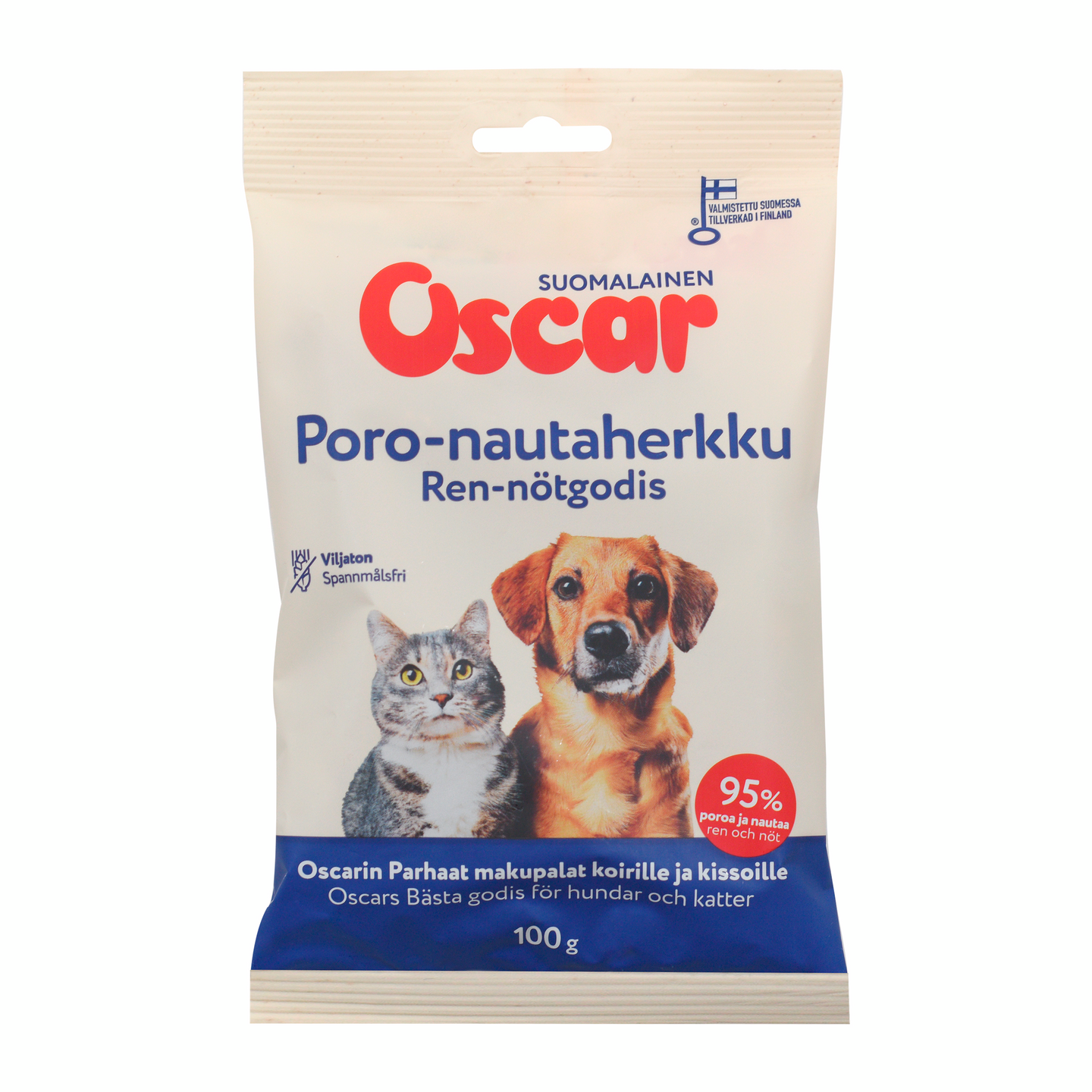 Viljaton herkkupala koirille ja kissoille. Täydennysrehu. Valmistettu Suomessa tuoreesta porosta, naudasta ja naudanmaksasta. Lempeässä lämmössä paistettu ja kuivattu herkku säilyttää luonnollisen ja herkullisen lihan maun. Ei sisällä viljaa, eikä täyteaineita.