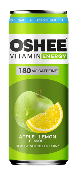 OSHEE Energy drink Apple & Lemon Zero 330ml. Raikas omenan ja sitruunan maku sekä 180 mg kofeiinia ilman sokeria. Energiajuoma, joka pitää sinut virkeänä ja valmiina joka tilanteessa!