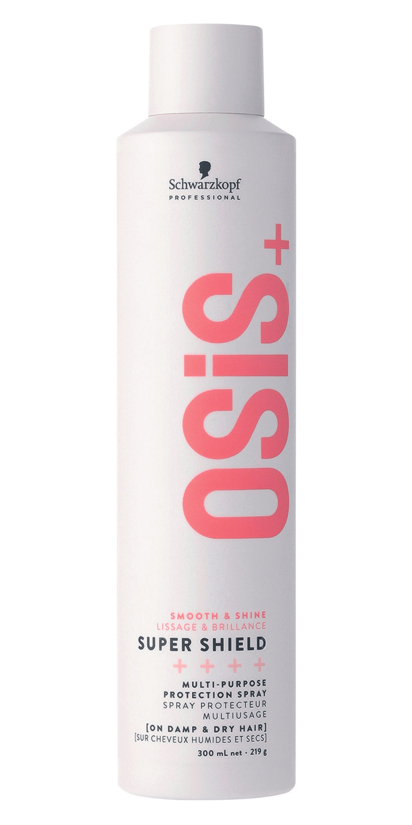 Todellinen moniottelija, OSiS Super Shield on monikäyttöinen suojasuihke joka on suunniteltu erityisesti pitkille hiuksille antamaan suojaa ympäristön vaikutuksia, ilmankosteutta ja lämpölaitteiden aiheuttamia vaurioita vastaan (lämpösuoja 230 C). Se kesyttää pörröiset hiukset ja parantaa kammattavuutta, sekä antaa uutta eloa elottoman näköisille hiuksille. Tuote on antibakteerinen ja suojaa hiuksia ilmansaasteilta