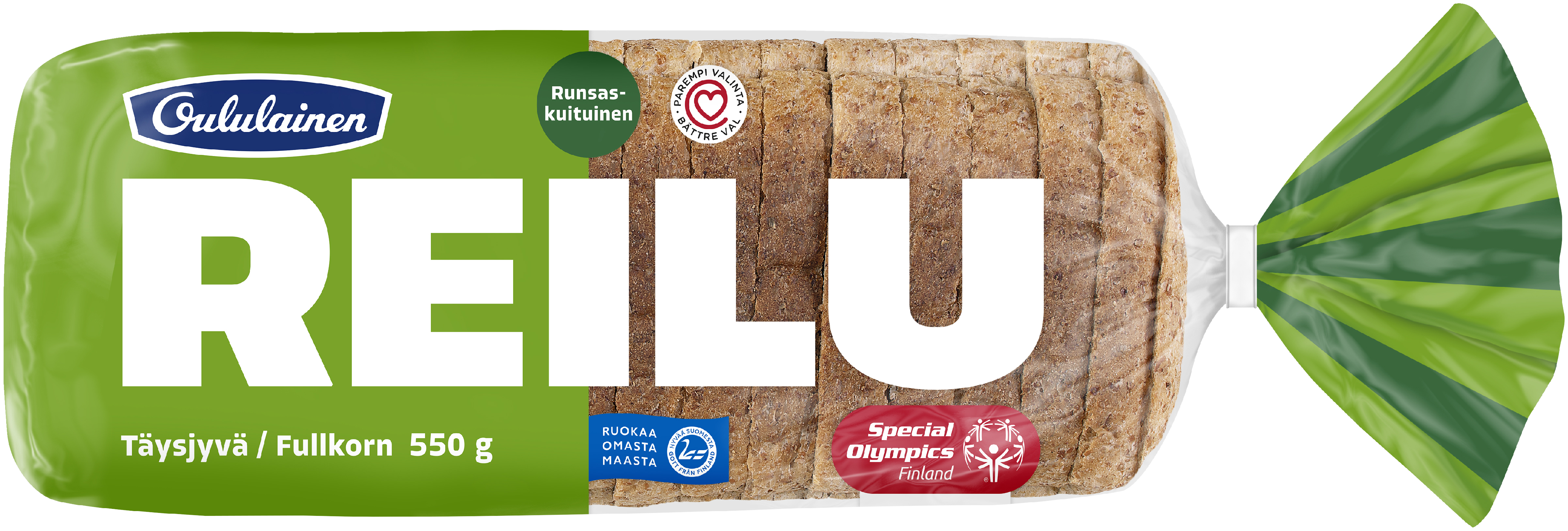 VegaaninenLapsiperheiden suosikkileivät Reilu-viipaleet ovat helppoa ja maukasta arkileipää. Reilu Täysjyvässä on runsaasti kuitua sekä vähemmän suolaa; siksi sille on myönnetty Sydänmerkki. Reilu-viipaleet sopivat täydellisesti kiireiseen lapsiperhearkeen ja ovat hyviä sellaisenaan tai paahtimen kautta voin kera tai perheen pienempien mielipäällisillä höystettynä. Leivottu Suomessa kotimaisesta viljasta.