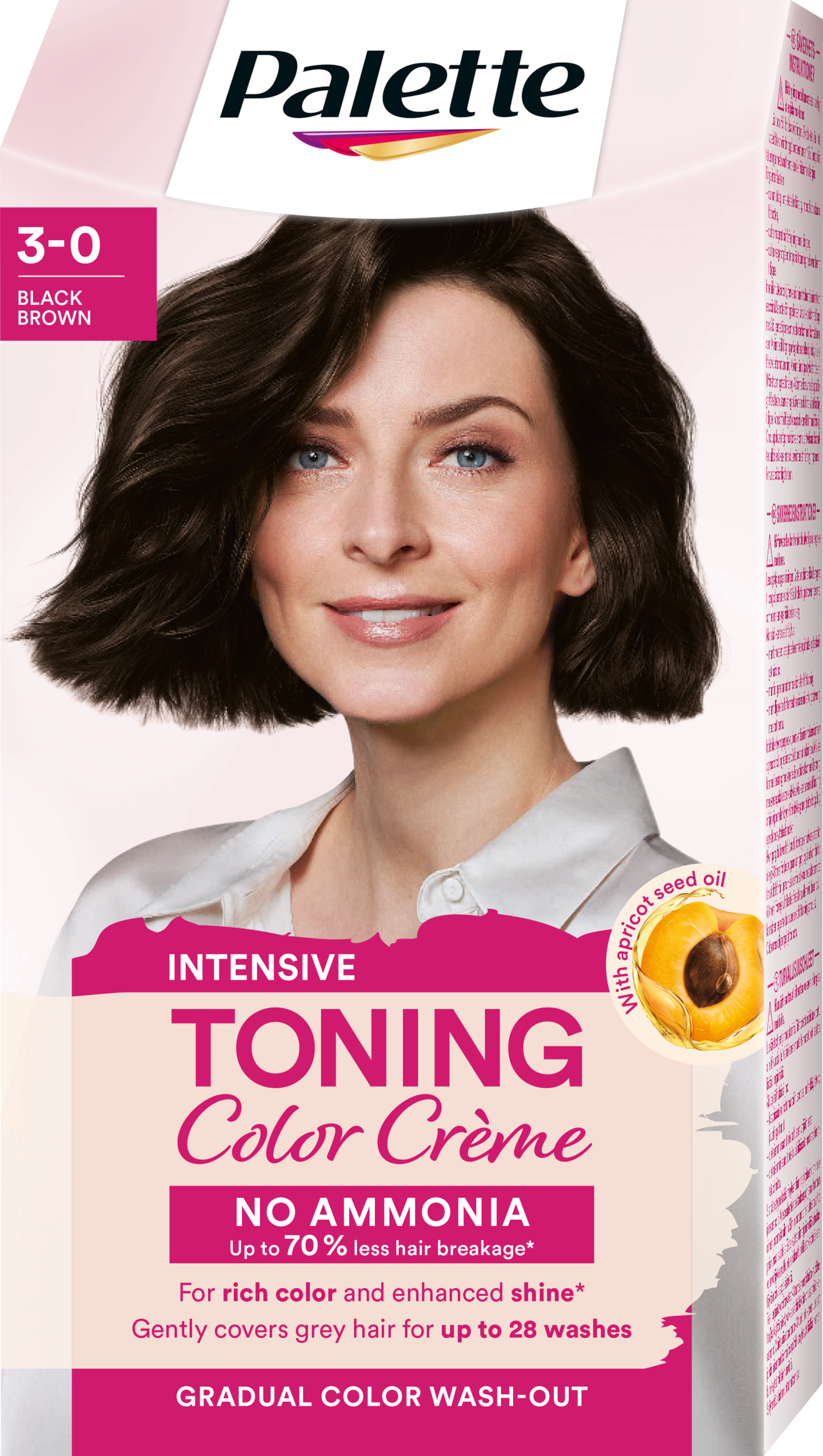 Palette Intensive Toning Color Crème 3-0 Black Brown Demi-permanent - Ammoniakiton hiusväri, joka peittää hellävaraisesti harmaat hiukset ja kestää jopa 28 pesukertaa