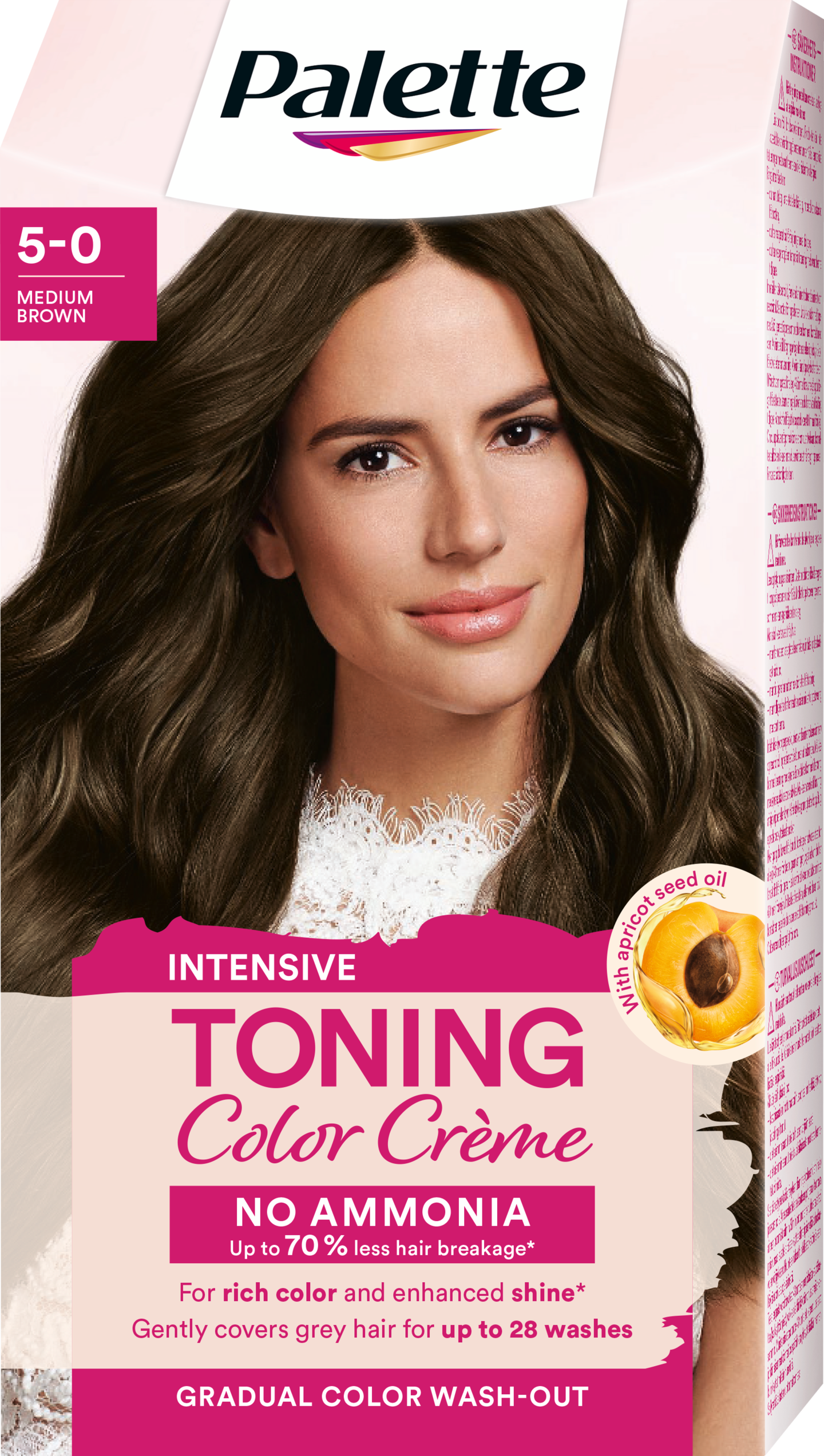 Palette Intensive Toning Color Crème 5-0 Medium Brown Demi-permanent - Ammoniakiton hiusväri, joka peittää hellävaraisesti harmaat hiukset ja kestää jopa 28 pesukertaa