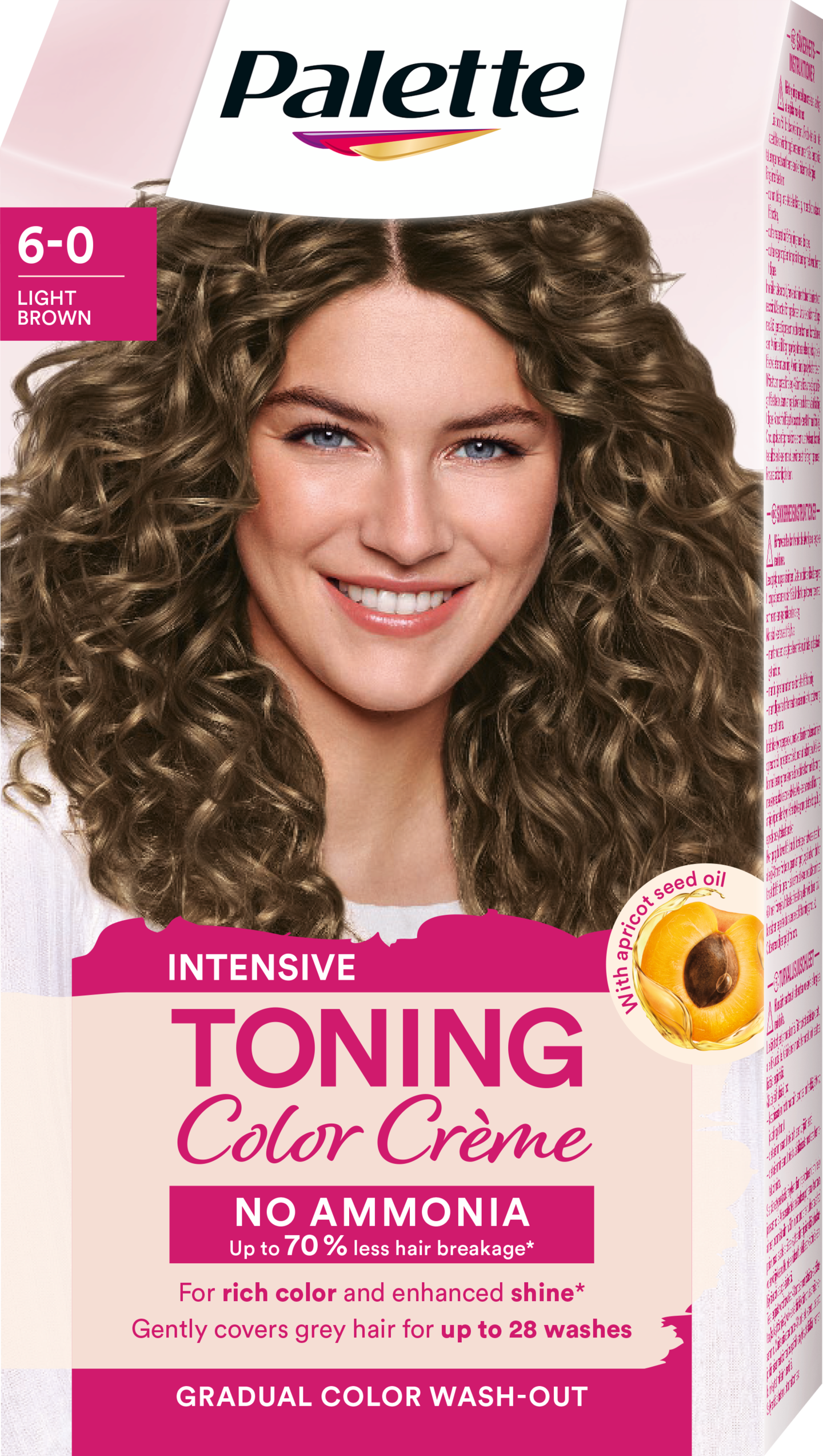 Palette Intensive Toning Color Crème 6-0 Light Brown Demi-permanent - Ammoniakiton hiusväri, joka peittää hellävaraisesti harmaat hiukset ja kestää jopa 28 pesukertaa