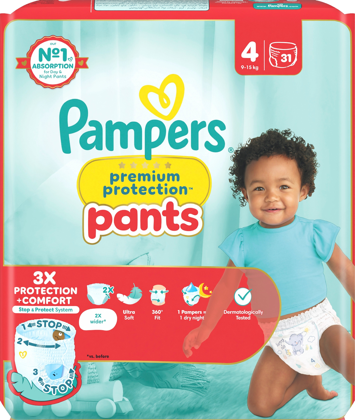Kun lapsi alkaa liikkua enemmän, kannattaa valita vaippa, joka istuu mukavasti ja antaa luotettavan suojan mukautuen jokaiseen liikkeeseen. Tarjoa lapsellesi Pampersin parasta mukavuutta ja vuotosuojaa Pampers Premium Protection -housuvaipoilla: 2 kertaa leveämmät* pehmeät jalansuut suojaavat punaisilta jäljiltä ja vuodoilta, erittäin pehmeä 360° vyötärönauha myötäilee lapsen muotoja hänen tutkiessaan maailmaa ja takaosan ainutlaatuinen Stop & Protect -tasku auttaa ehkäisemään vuotoja. Kaikkien Pampersin housuvaippojen tavoin Pampers Premium Protection -housuvaipat on helppo vaihtaa myös lapsen kiemurrellessa: vedä päälle yhdellä liikkeellä, riisu repäisemällä sivut auki ja hävitä helposti käärimällä rullalle ja kiinnittämällä teipillä. Vanhempien tapaan Pampers asettaa lasten turvallisuuden kaiken muun edelle: Pampers Premium Protection Nappy Pants -housuvaipat ovat dermatologisesti testattuja ja Skin Health Alliancen ihotautilääkäreiden hyväksymiä. Ne ovat myös riippumattoman tutkimuslaitoksen OEKO-TEX Standard 100 -sertifioimia. Haluatko tietää lisää Pampersin käyttämistä materiaaleista? Käy osoitteessa pampers.fi. *verrattuna aiempaan.