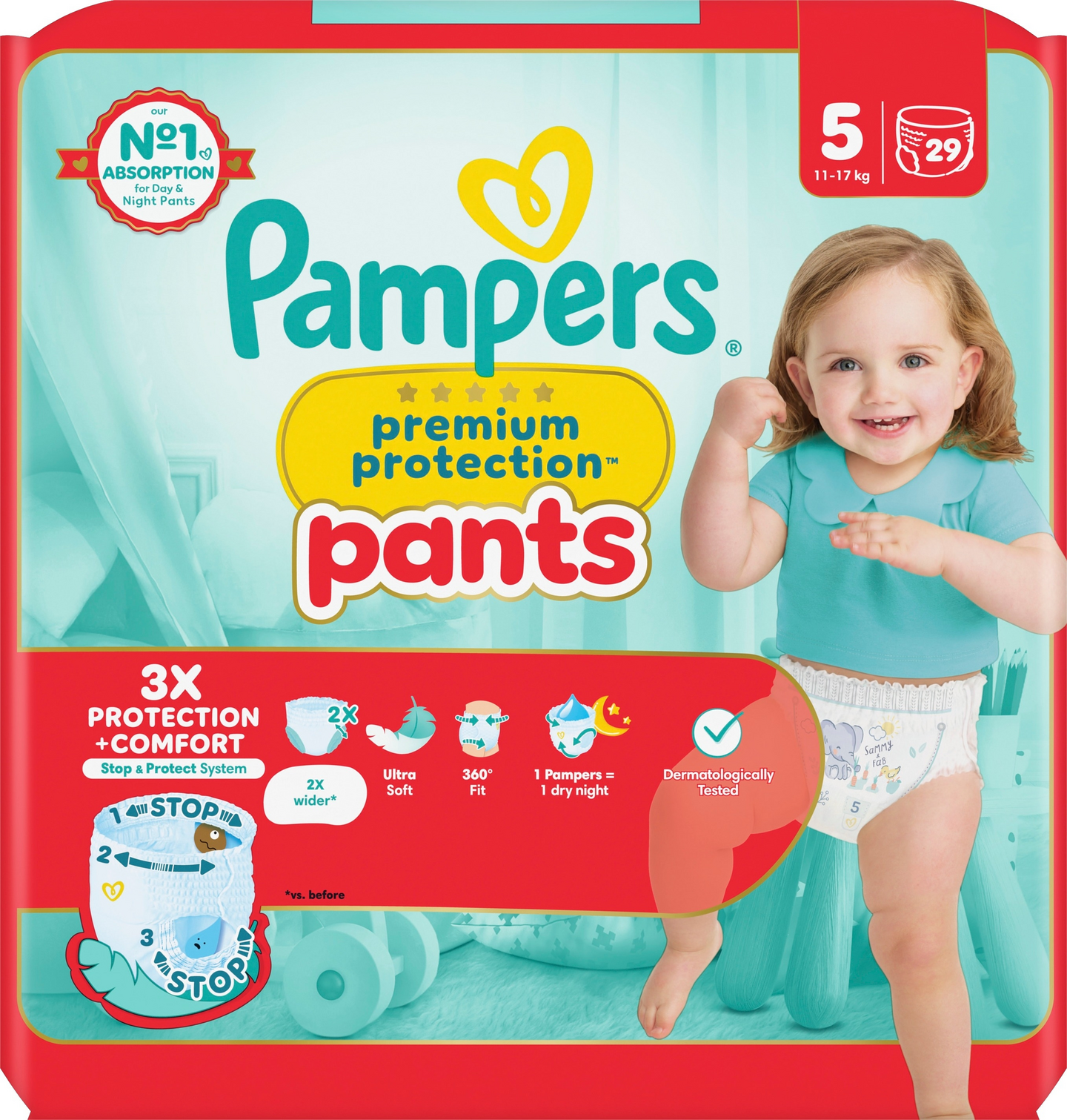 Kun lapsi alkaa liikkua enemmän, kannattaa valita vaippa, joka istuu mukavasti ja antaa luotettavan suojan mukautuen jokaiseen liikkeeseen. Tarjoa lapsellesi Pampersin parasta mukavuutta ja vuotosuojaa Pampers Premium Protection -housuvaipoilla: 2 kertaa leveämmät* pehmeät jalansuut suojaavat punaisilta jäljiltä ja vuodoilta, erittäin pehmeä 360° vyötärönauha myötäilee lapsen muotoja hänen tutkiessaan maailmaa ja takaosan ainutlaatuinen Stop & Protect -tasku auttaa ehkäisemään vuotoja. Kaikkien Pampersin housuvaippojen tavoin Pampers Premium Protection -housuvaipat on helppo vaihtaa myös lapsen kiemurrellessa: vedä päälle yhdellä liikkeellä, riisu repäisemällä sivut auki ja hävitä helposti käärimällä rullalle ja kiinnittämällä teipillä. Vanhempien tapaan Pampers asettaa lasten turvallisuuden kaiken muun edelle: Pampers Premium Protection Nappy Pants -housuvaipat ovat dermatologisesti testattuja ja Skin Health Alliancen ihotautilääkäreiden hyväksymiä. Ne ovat myös riippumattoman tutkimuslaitoksen OEKO-TEX Standard 100 -sertifioimia. Haluatko tietää lisää Pampersin käyttämistä materiaaleista? Käy osoitteessa pampers.fi. *verrattuna aiempaan.