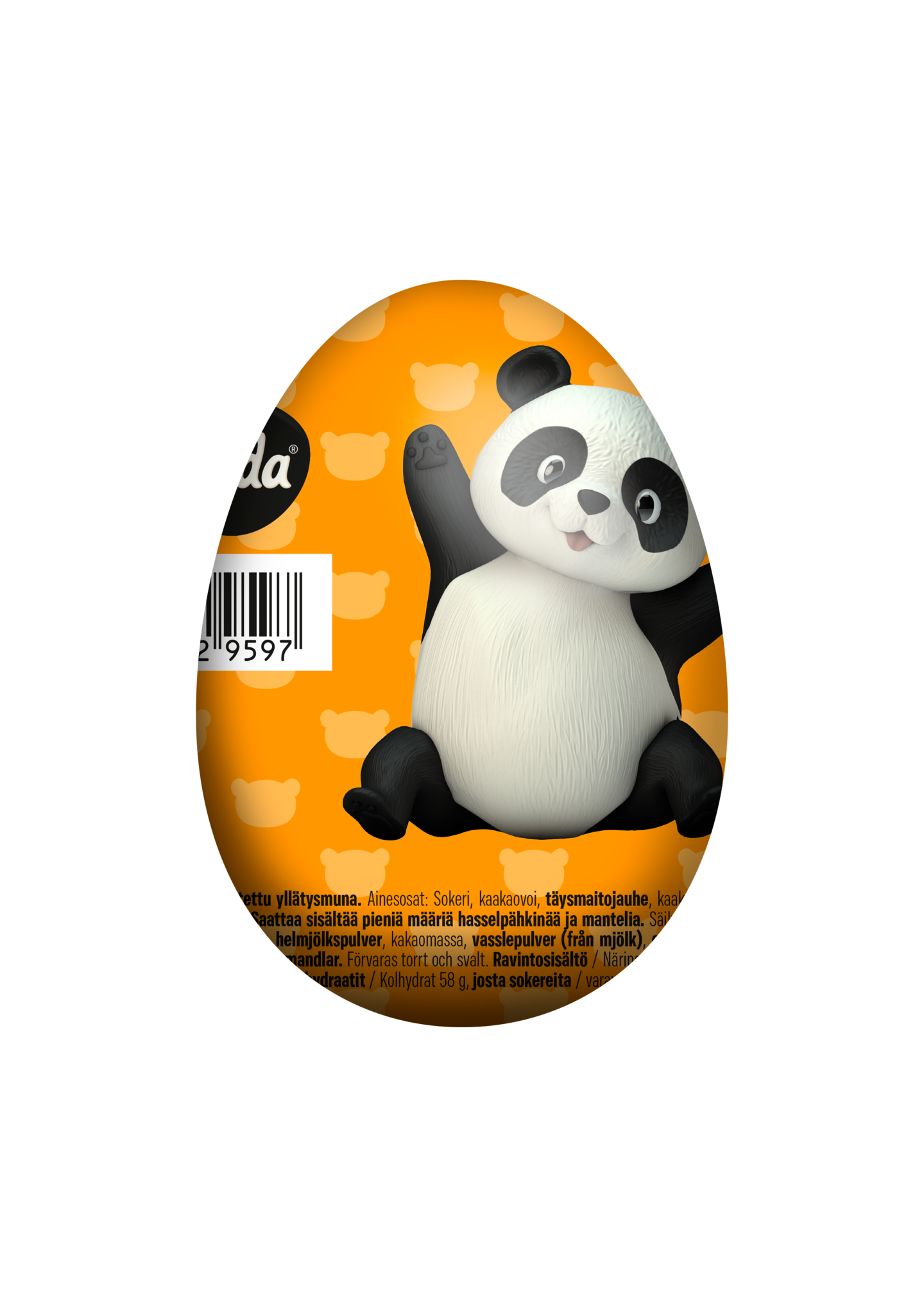 Värikkäissä Panda-suklaamunissa seikkailee viisi erilaista panda-keräilyhahmoa, muistipeli tai tarroja. Erikoisuutena jokaisen yllätysmunan sisältä löytyy AR-koodi, joka herättää appsin kautta eloon hauskan virtuaalipandan! Ja mikä parasta, tässä munassa myös itse suklaa on yllätys – puolet munasta on valkosuklaata, puolet maitosuklaata.