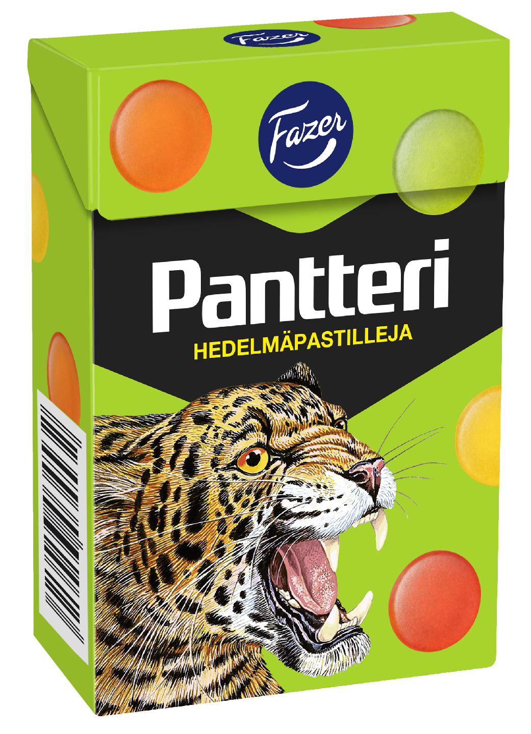 Pantteri tuo kissaeläimen vaistosi esiin. Pantteri hedelmäpastillit ovat raikas yhdistelmä hedelmäisiä makuja, jotka karjaisevat lempeästi. Iso aski kulkee kätevästi mukana ja auttaa taltuttamaan kovemmankin makeanhimon.