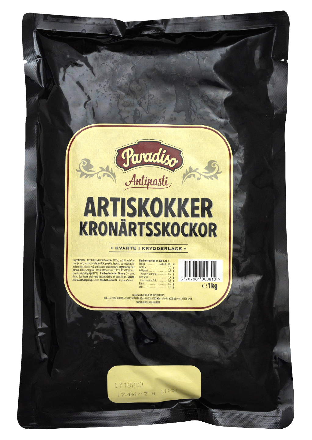 artisokka 80% auringonkukkaöljy, suola, sokeri, valkosipuli, persilja, sipuli, happamuudensäätöaine (sitruunahappo), hapettumisenestoaine (askorbiinihappo).