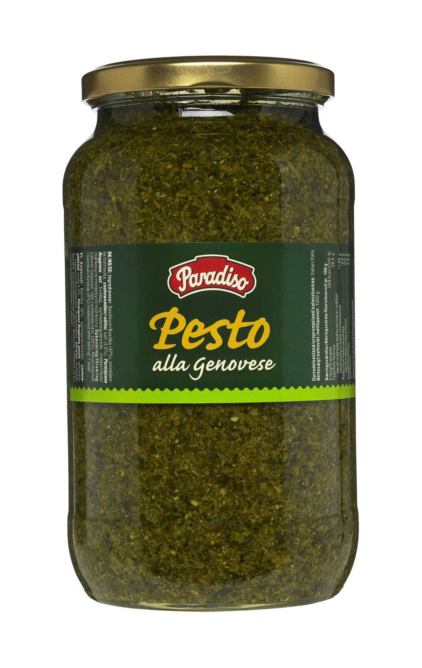 Basilika 55%, auringonkukkaöljy, CASHEWPÄHKINÄ, suola, laktoositon JUUSTO (MAITO), happamuudensäätöaine (maitohappo).