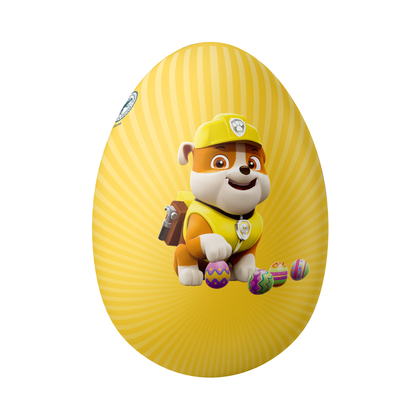 Paw Patrol eli suomeksi Ryhmä Hau on lasten keskuudessa erittäin suosittu ohjelma. Sen suloiset koirahamot sekä heidän seikkailunsa Jännälahdella ja sen ympäristössä ilahduttavat pieniä katsojia. Herkullisten maitosuklaamunien sisältä löytyy kivoja Ryhmä Hau yllätyksiä.