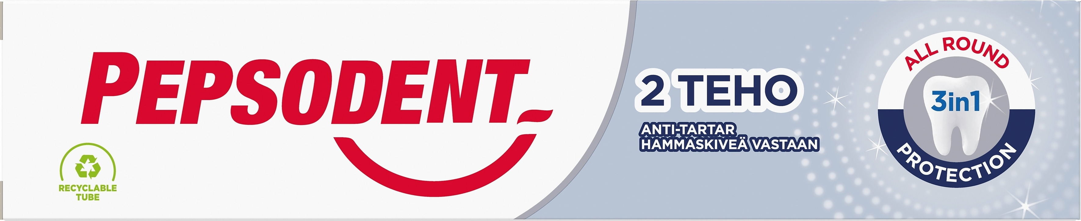Pepsodent 2 Teho hammastahna soveltuu erityisesti hammaskiven ehkäisyyn, sillä se sisältää fluoria ja pyrofosfaattia, joka ehkäisee plakin kovettumista hammaskiveksi. Pepsodent 2 Teho on fluorihammastahna, joka auttaa tehokkaasti taistelussa hampaiden reikiintymistä ja hammaskiveä vastaan.