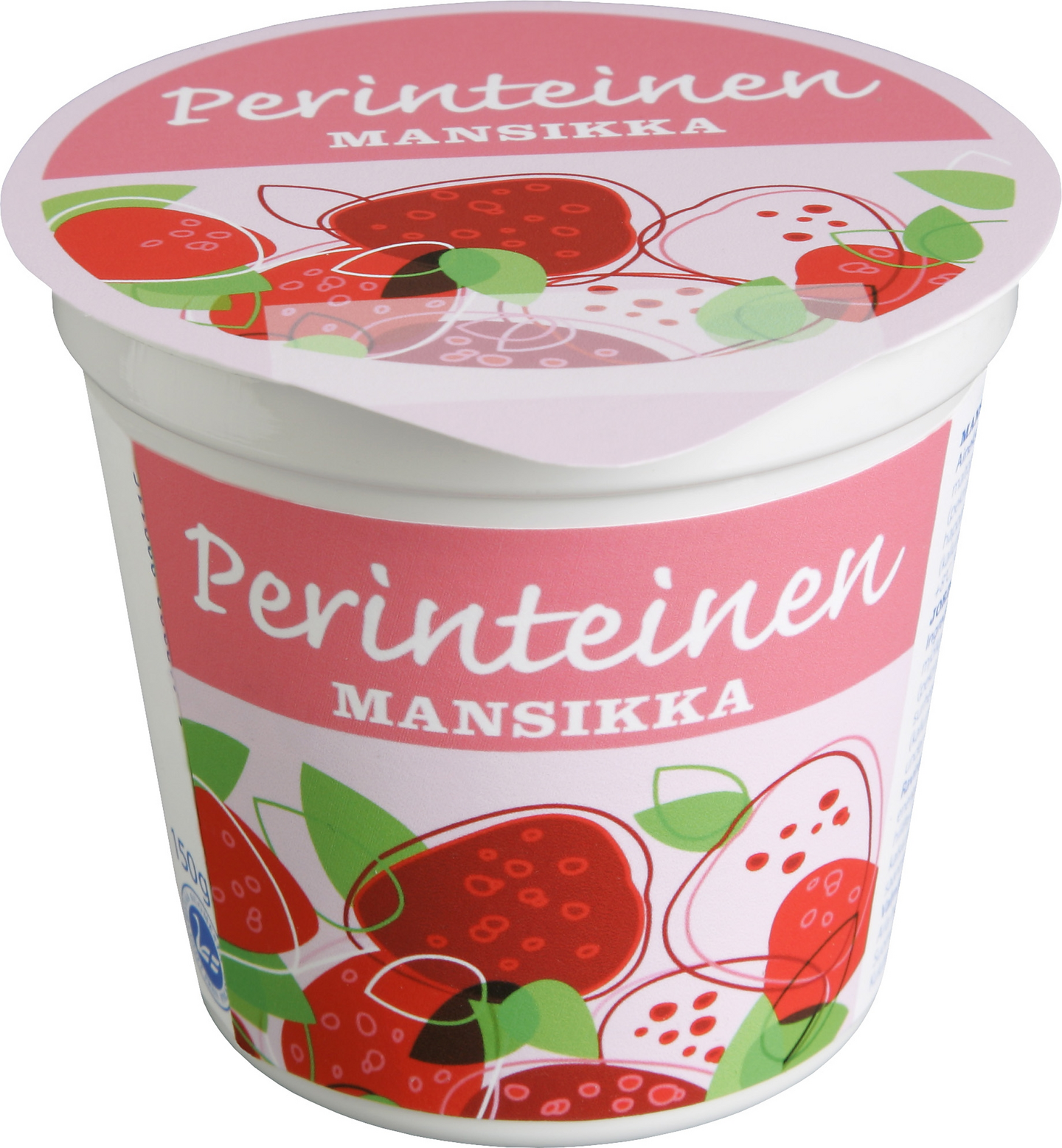 Pastöroitu MAITO, sokeri, mansikka 2,3%, mansikkatäysmehu(tiivisteestä)(2,2%), MAITOPROTEIINI, muunnettu tärkkelys, sakeuttamisaineet(pektiini, johanneksenleipäpuujauhe), aromit, väri(punajuuriväri), happamuudensäätöaine(sitruunahappo) ja jogurttihapate. Maidon alkuperämaa: Katso päiväysleima Suomi (FI) tai Suomi/Ruotsi (FI/SE).
