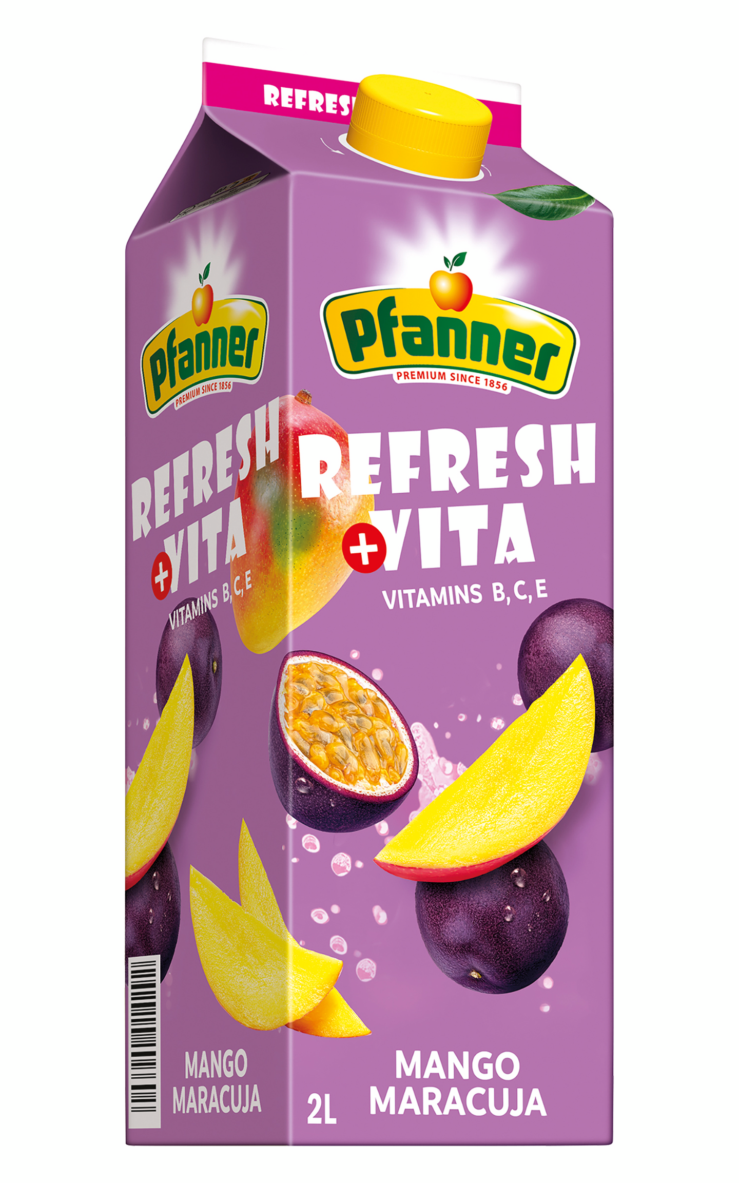 VegaaninenVirkistävä vitamiinijuoma täynnä makua! Eksoottisen mangon ja passionhedelmän makuinen Pfanner Refresh+Vita -juoma yhdistää raikkauden ja vitamiinit fiksuksi valinnaksi arkeen. Vähäkalorinen, ilman lisättyä sokeria ja rikastettu C-, B6- ja B12 vitamiineilla. Täydellinen janonsammuttaja ja hyvän olon buustaaja!