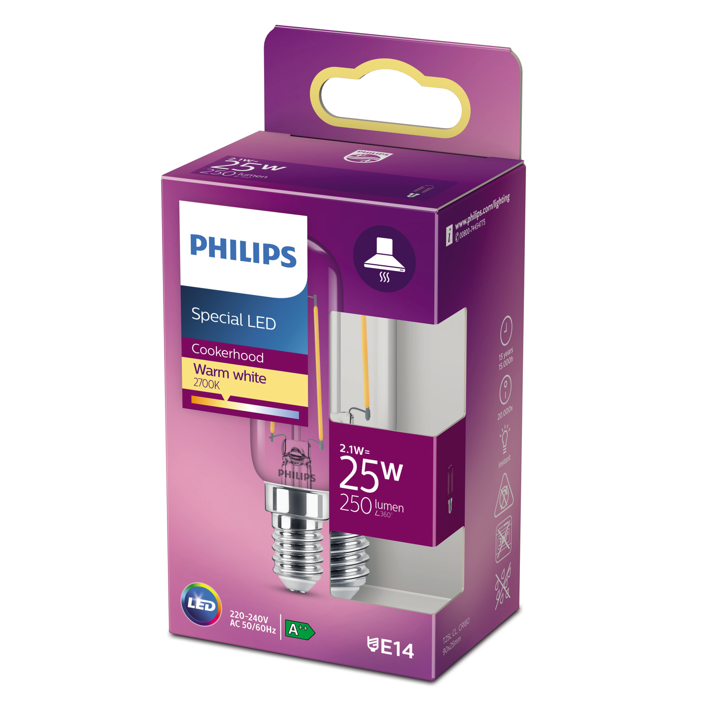Philips LED -kodinkonelampun värilämpötila on 2700K (lämmin valkoinen) ja kanta on E14. Kodinkonelamppu sopii useisiin kodinkoneisiin sekä yleisvalaistukseen. Lampun LED-valo tuottaa silmillesi sopivaa valoa.