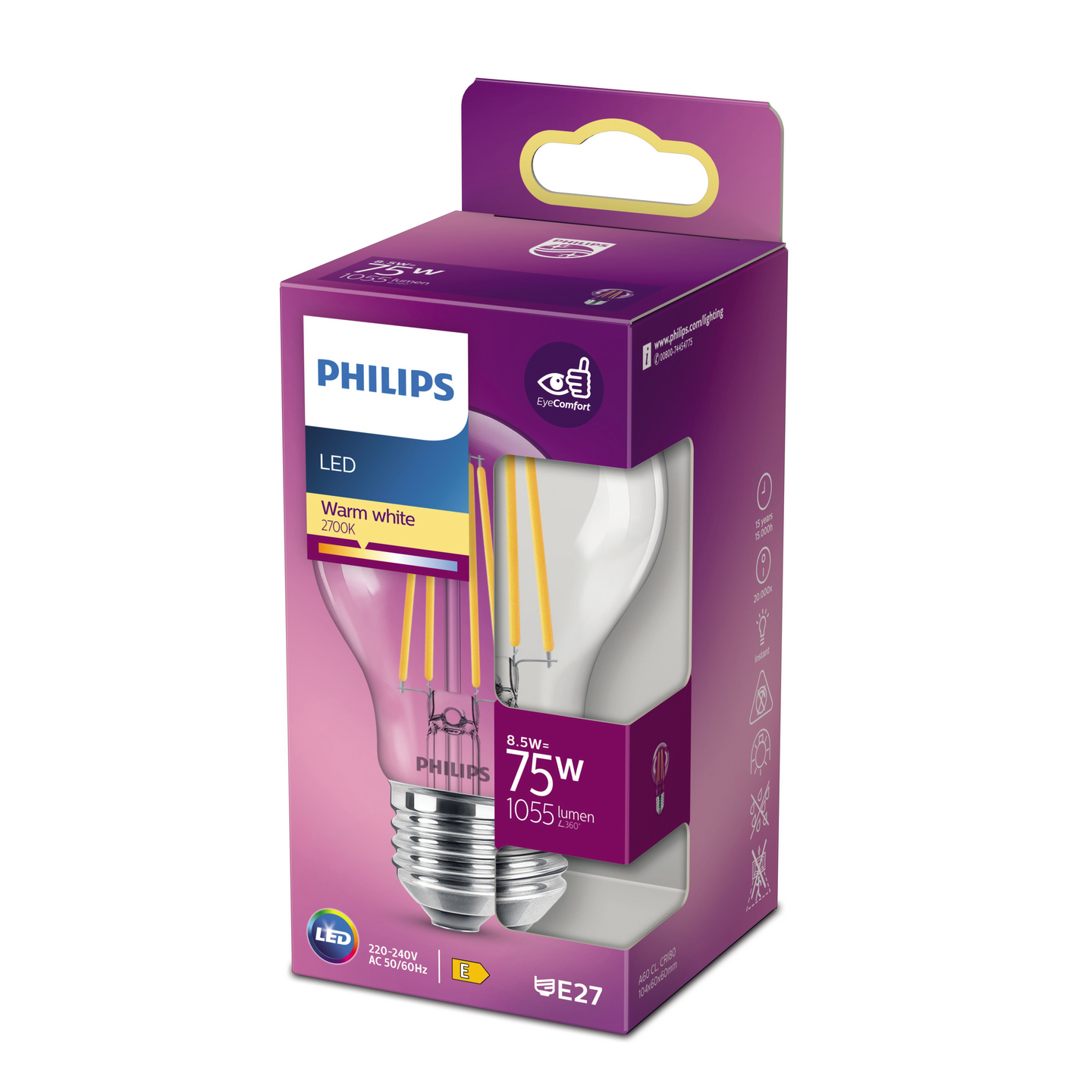 Philips LED -vakiolampun värilämpötila 2700K (lämmin valkoinen), se sopii useimpiin valaisimiin sen E27-kannan ansiosta ja sen käyttöikä on jopa 15 000 tuntia. Lampun LED-valo tuottaa silmillesi sopivaa valoa.