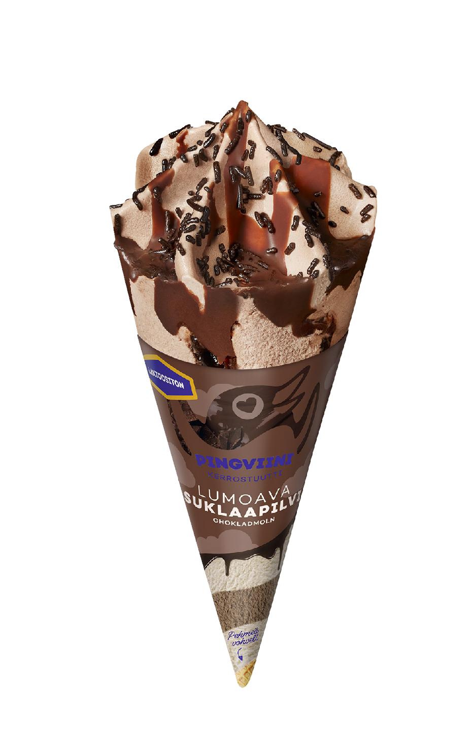 LaktoositonLaktoositon Pingviini Suklaapilvi on tuutti suklaan ystävän makuun! Kaakaokermajäätelö, suklaakastike ja suklaanmakuinen kuorrute antavat lumoavan suklaisen makuelämyksen. Tuotteen kaakao on Rainforest Alliance -sertifioitua.