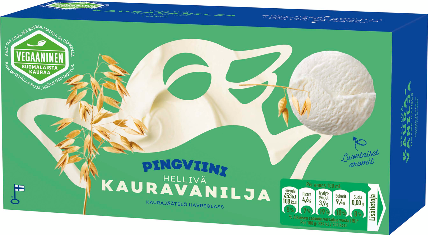 Pingviini vegaaninen kaurajäätelö kotipakkaus Vanilja 1L/540g