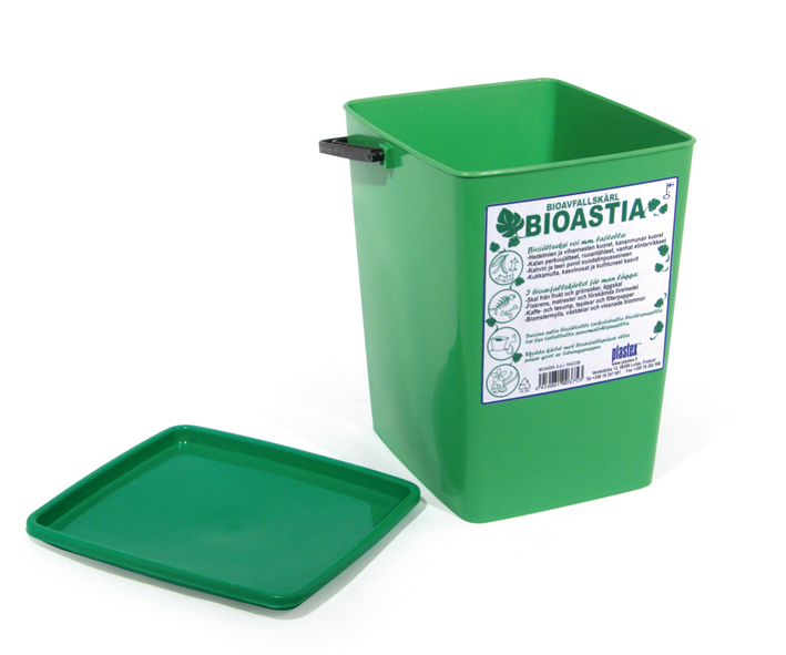 Plastexin kotimainen bioastiassa on kansi, joka pitää hajut astiassa ja pikkukärpäset loitolla.