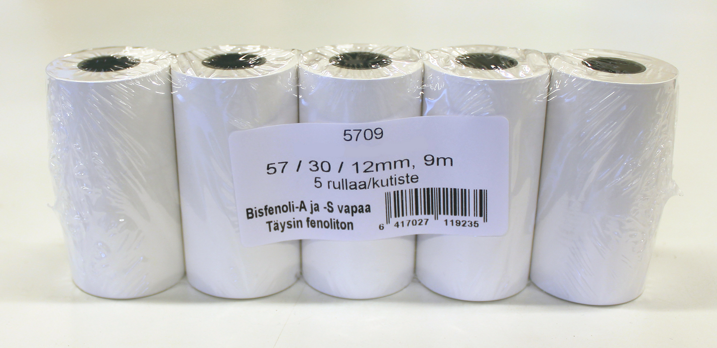 Plastipap Lämpöpaperirulla 57/30/12mm 9m 5kpl