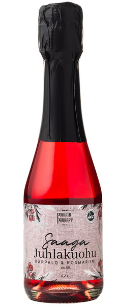VegaaninenKirkkaan punainen pirskahteleva kuohujuoma, jonka ihanan kirpeän maun takaa suomalainen karpalo ja rosmariini.