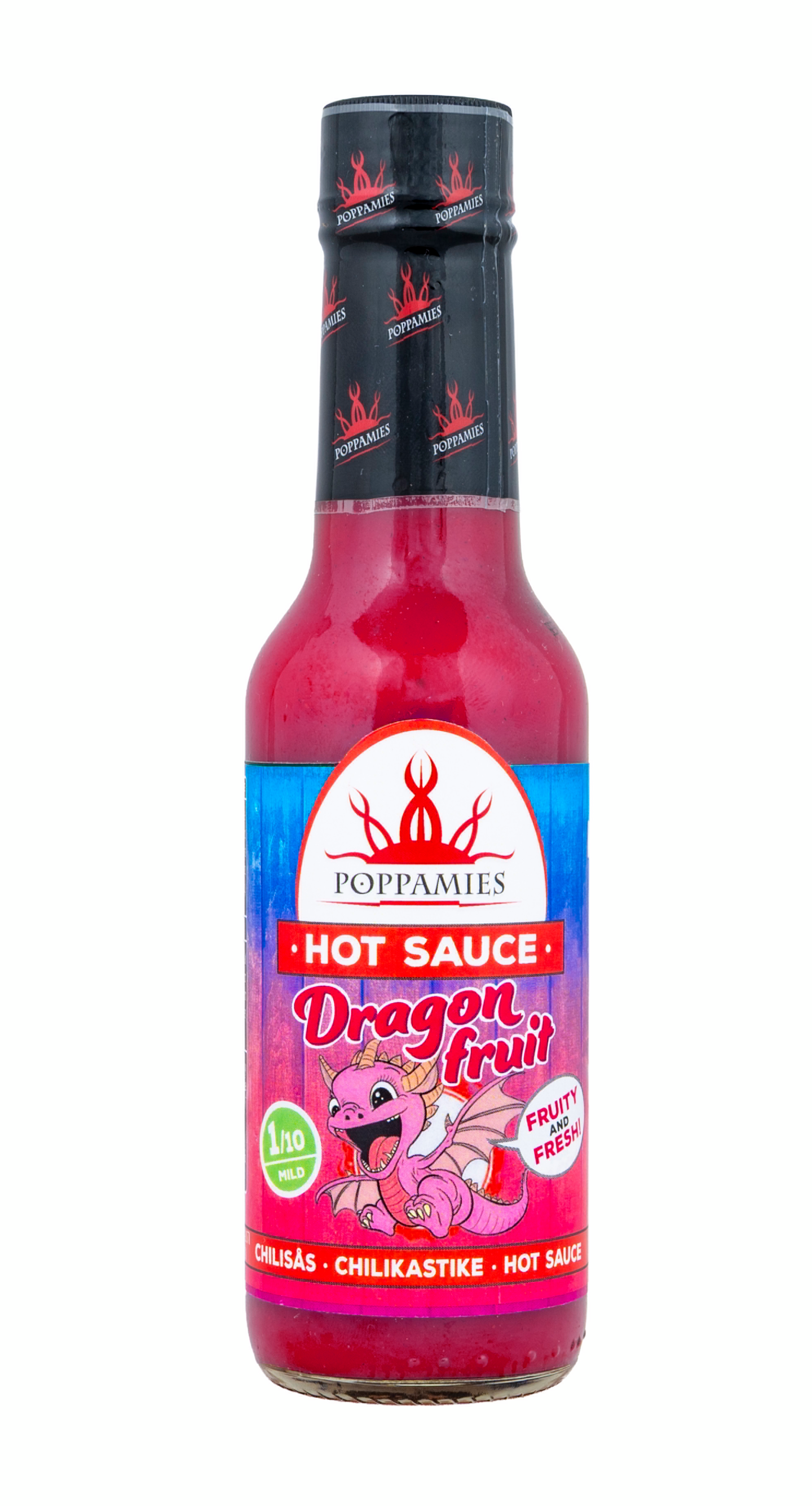 VegaaninenPoppamiehen Dragon Fruit -chilikastike on kuin trooppinen loma pullossa – makea, mieto ja älyttömän hyvä! Lorauta sitä mihin vaan, eikä tarvitse pelätä hikipisaroita – tämä on hedelmäistä parhautta! Gluteeniton, laktoositon, vegaaninen.