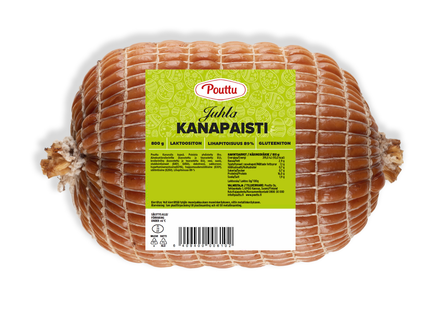LaktoositonPoutun herkullinen Kanapaisti juhlapöytään. Tuote on kypsä ja sopii nautittavaksi kylmänä tai kuumana. Laktoositon, gluteeniton.
