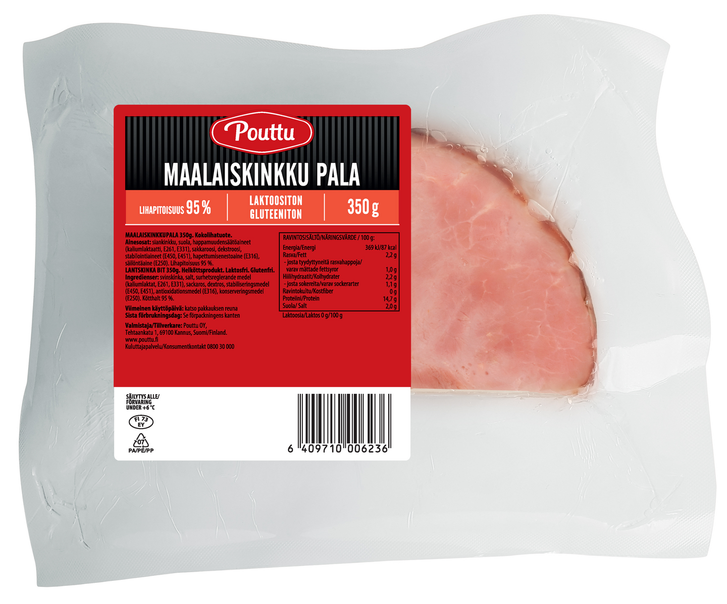 Perinteinen maalaiskinkku pala ruoanlaittoon. Sopii mm. kinkkukiusaukseen, pizzaan tai pastaan. Laktoositon, gluteeniton.